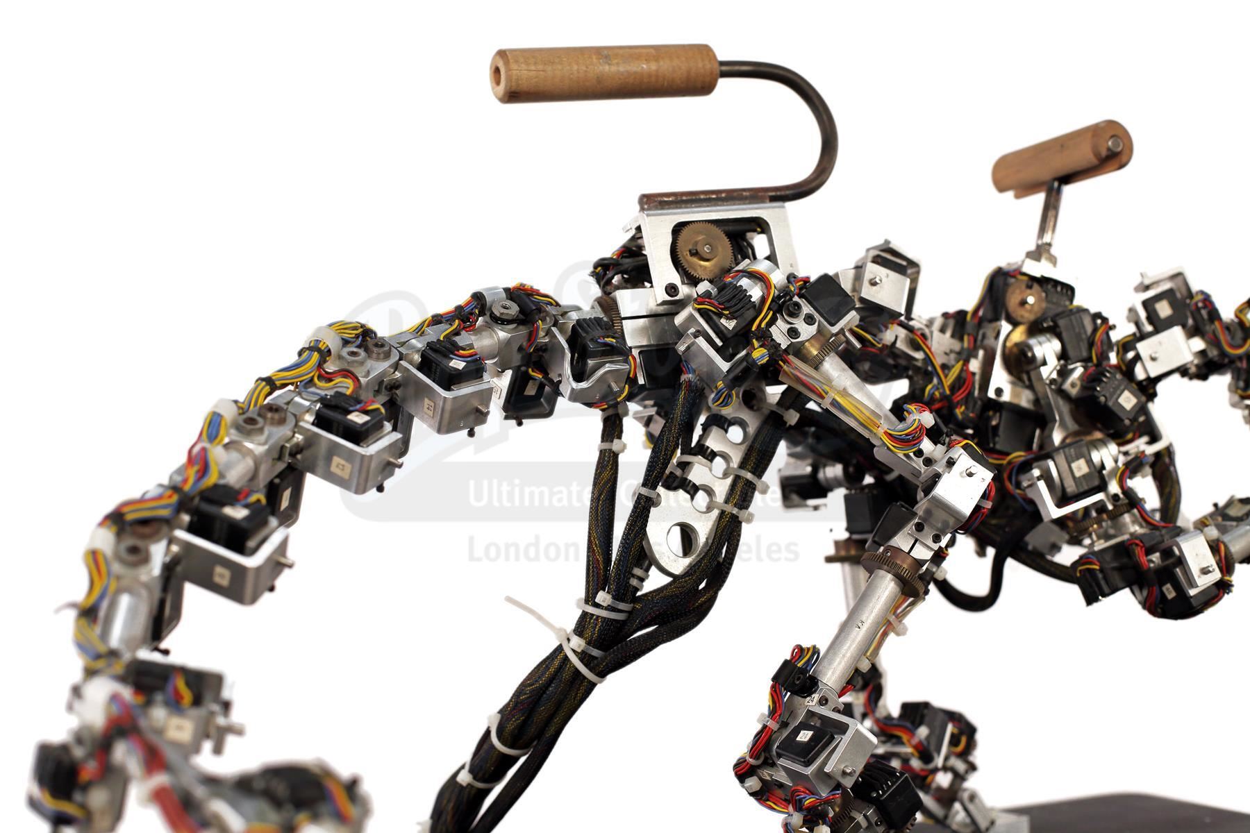 A Dinosaur Input Device (D.I.D.) electronic raptor armature from the production of Steven Spielberg's sci-fi action-adventure Jurassic Park. Spielberg initially planned to achieve the film's dinosaurs through 'Go-Motion' animation, but new breakthroughs at ILM enabled a mid-production pivot to digital animation as the technique of choice.