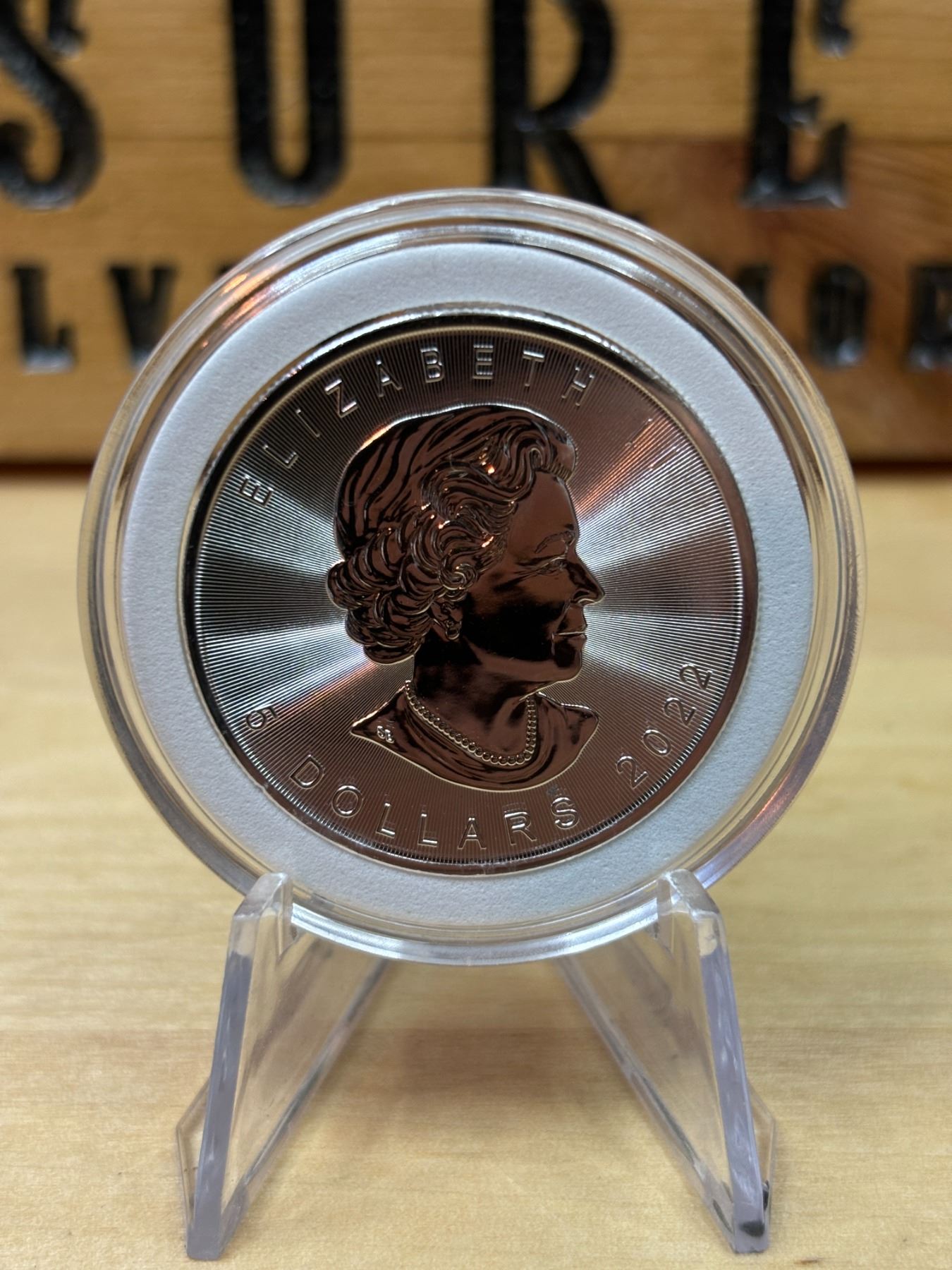 The 2022 1 oz Canadian Silver Maple Leaf is a .9999 fine silver coin featuring King Charles III on the obverse and the iconic maple leaf on the reverse. With advanced security features and MINTSHIELD™ protection, it’s perfect for collectors and investors.