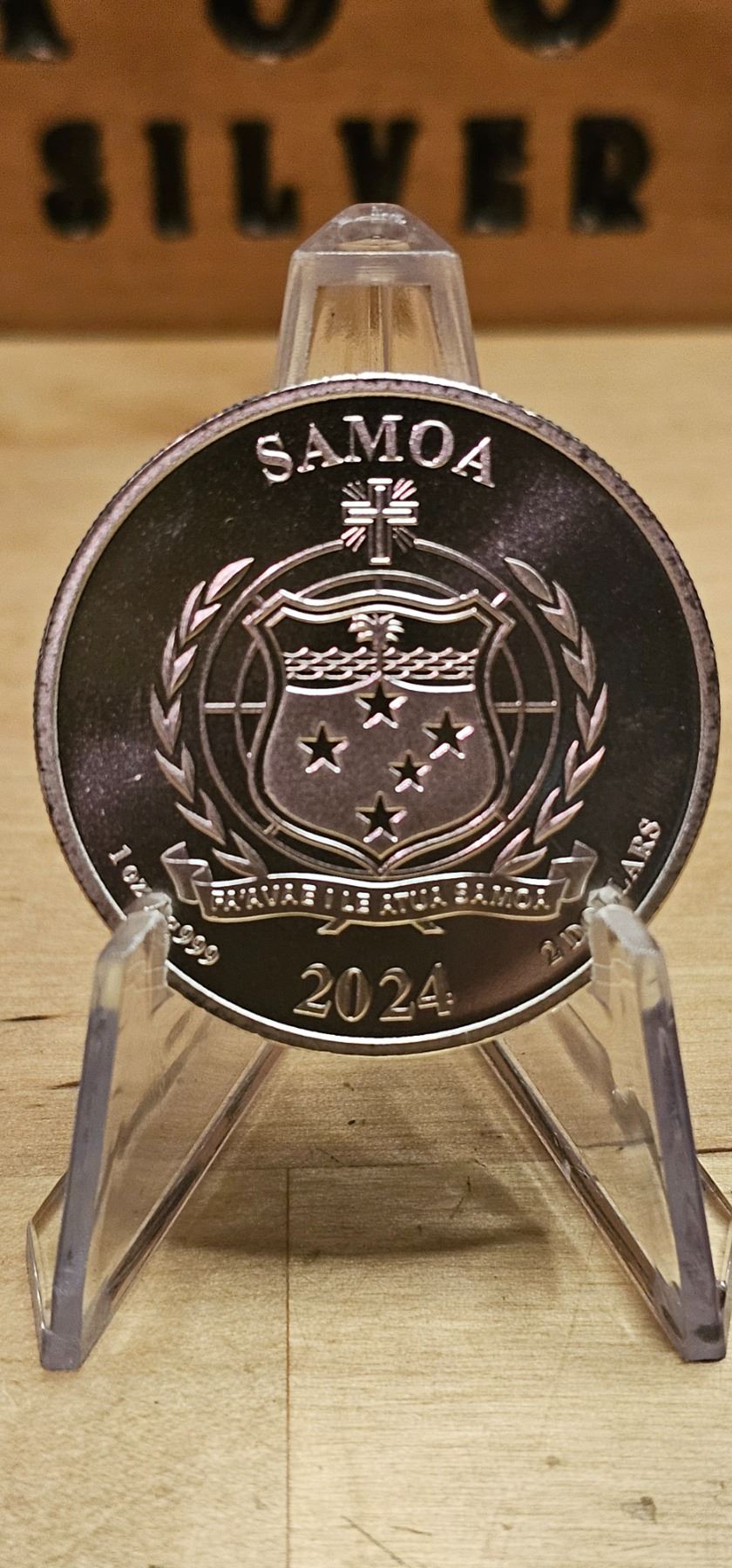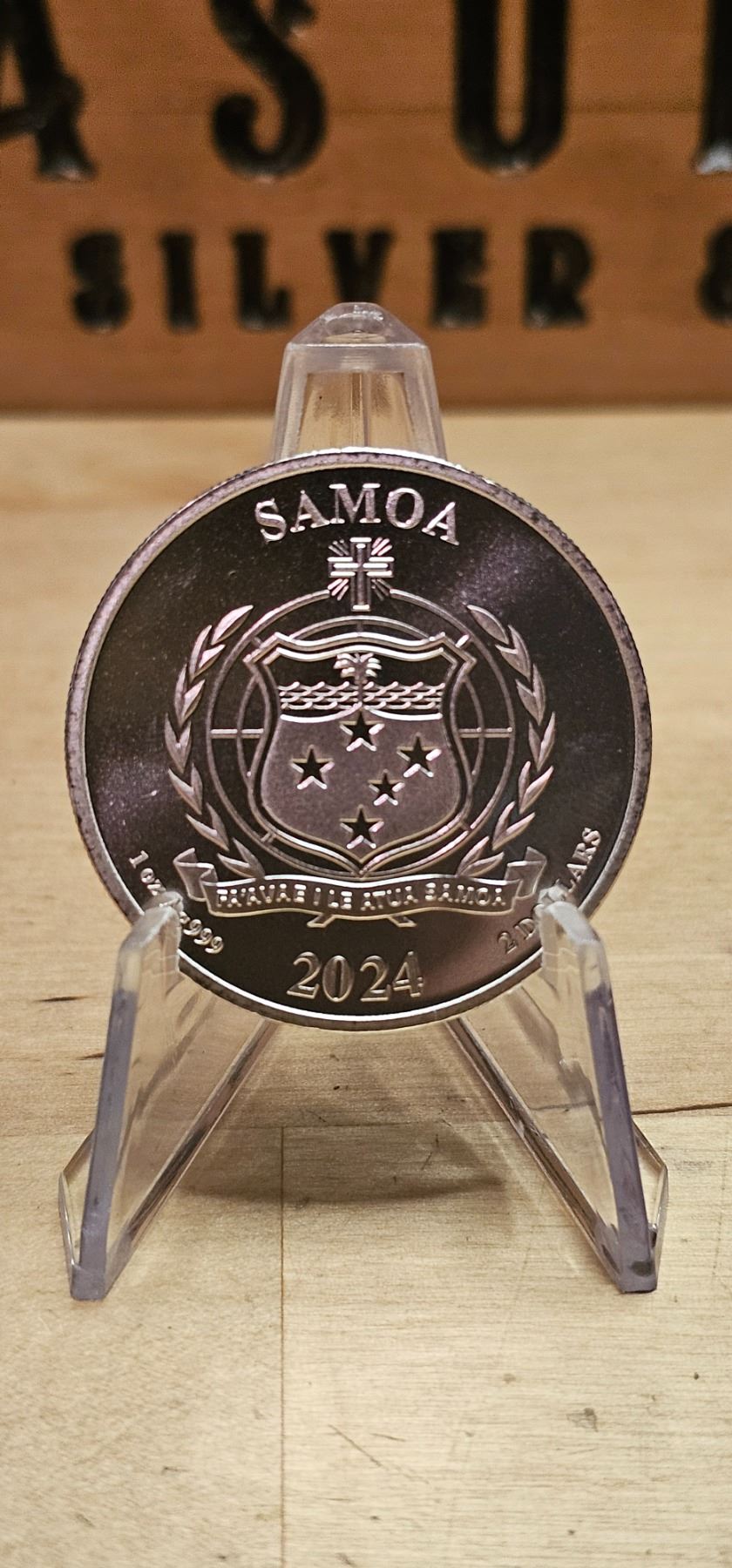 The 1 oz Samoa Morgan Union Dollar Silver Coin is a modern tribute to the classic U.S. Morgan Silver Dollar, blending historical design with contemporary minting. Struck in .999 fine silver, it features the iconic imagery of Lady Liberty on the obverse, and the reverse showcases an eagle in a traditional design similar to the original Morgan Dollar. The coin is issued by Samoa and combines American numismatic history with precious metal value, making it a popular choice for collectors and investors.