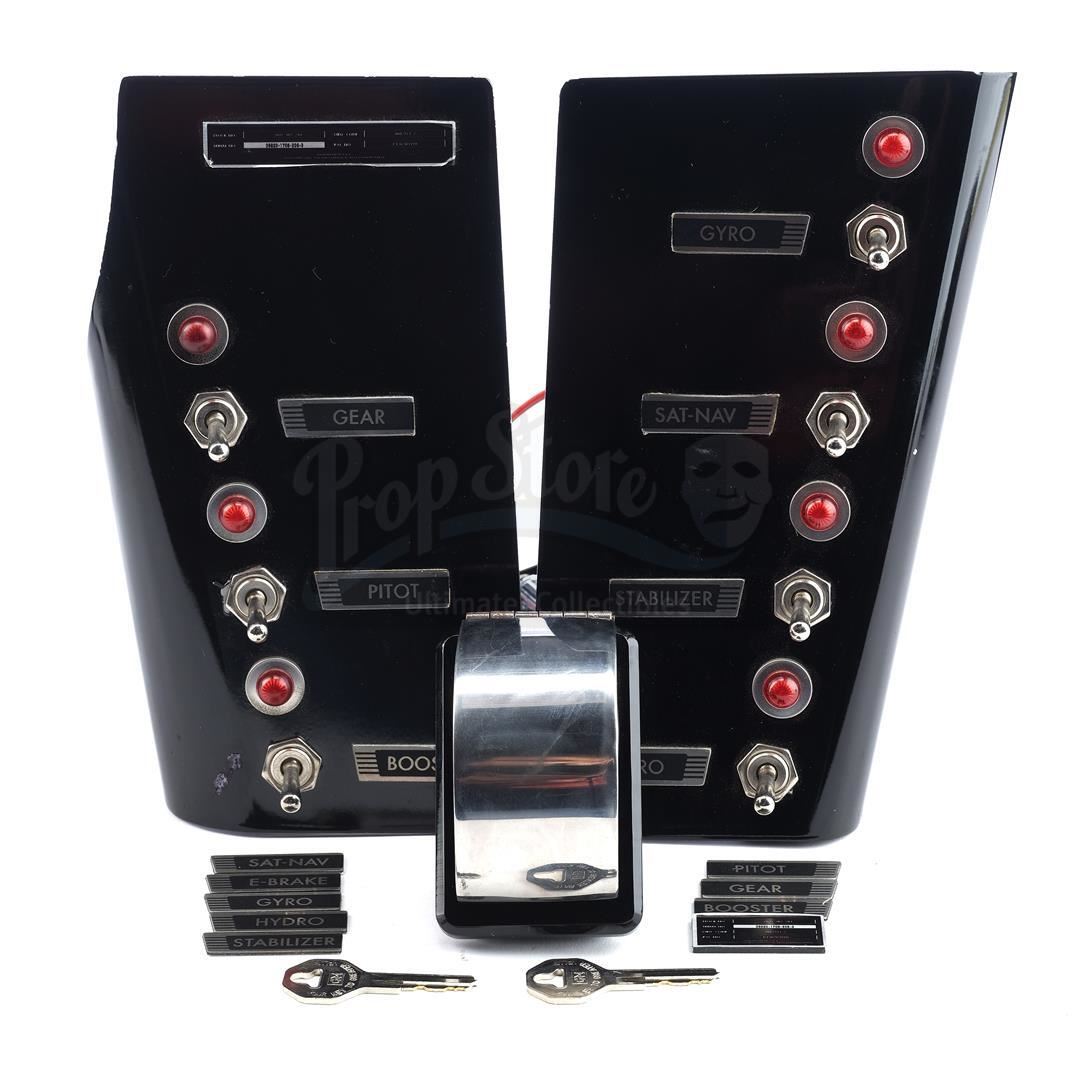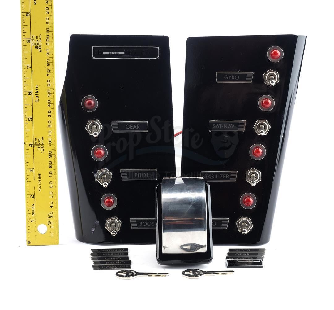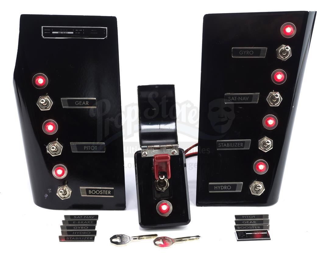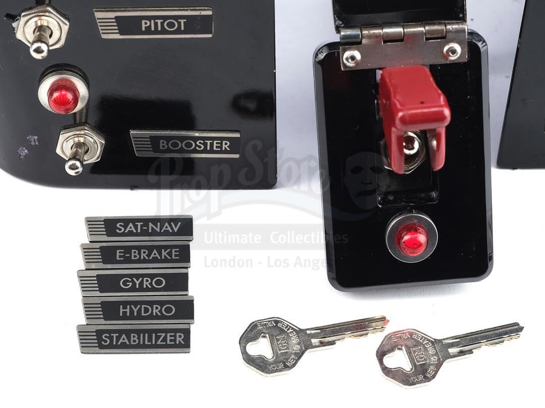 L.O.L.A.'s light-up dashboard components, keys and license plates from Seasons 1, 2, and 7 of Marvel's Agents of S.H.I.E.L.D. Agent Phil Coulson is the sole driver of his custom-made flying corvette, whose dashboard containing a series of special controls appears throughout the seasons. This lot consists of a pair of black and yellow metallic license plates with a pair of metal border covers, a pair of metal keys on a metal keychain, a battery-powered black urethane panel featuring a red light with a metal switch and a red safety stopper underneath a metal flip-up covering, a battery powered black urethane and metal left hand panel featuring three red lights with three metal switches with black and gray labels, a battery-powered black urethane and metal right hand covering featuring four red lights with four metal switches with black and gray labels, and eight replacement black and gray labels. Each red light can be illuminated by activating the coinciding switch directly below it. It is in excellent overall condition with minor wear from production on all items. This item contains electronic and mechanical components. While every effort is made to describe them accurately, no guarantee or warranty is made as to the functionality, lifespan or safety of those components. It is entirely incumbent on the new owner to satisfy themselves as to their safe use and maintenance.