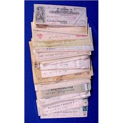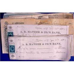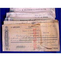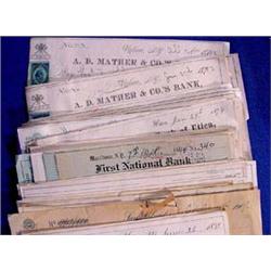 NY State Cancelled Checks and Bank Notes. Many notes are decorated with dogs, figures and some early stamps. Pertain to New York State, specifically the Leatherstocking region. Ca. 1900. Est. $60 - $100.