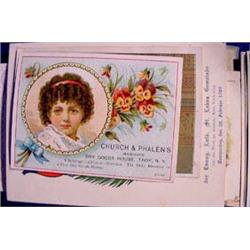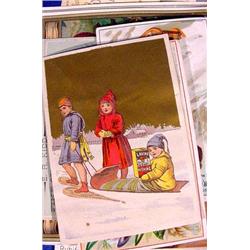 Victorian Trade Card Advertising Lot. This lot consists of 100+ trade cards and other pieces of Victorian paper. Most of the images depict children and other Victorian images. Some have damage, most are in good condition.. Ca. 1900. Est. $100 - $200.