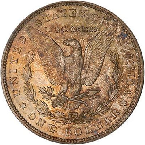 1904-O Morgan Dollar. A gleaming gem with crescent of shimmering blue off to the right side on the obverse, while the reverse is rather mottled russet brown and grade. (#7292)