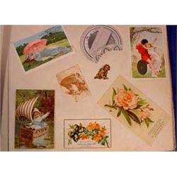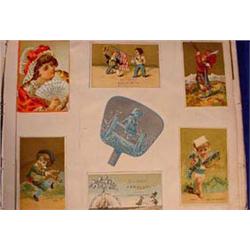 Great 19th c. Trade Card Album inscribed "Edith Belden Sept. 24th 1882 Syracuse, N.Y." Album includes over 150 trade cards and decorative cut outs. Colorful lithographs of children, animals, beautiful women, flowers and animals are included. Each pasted in. Est. $160 - $250.