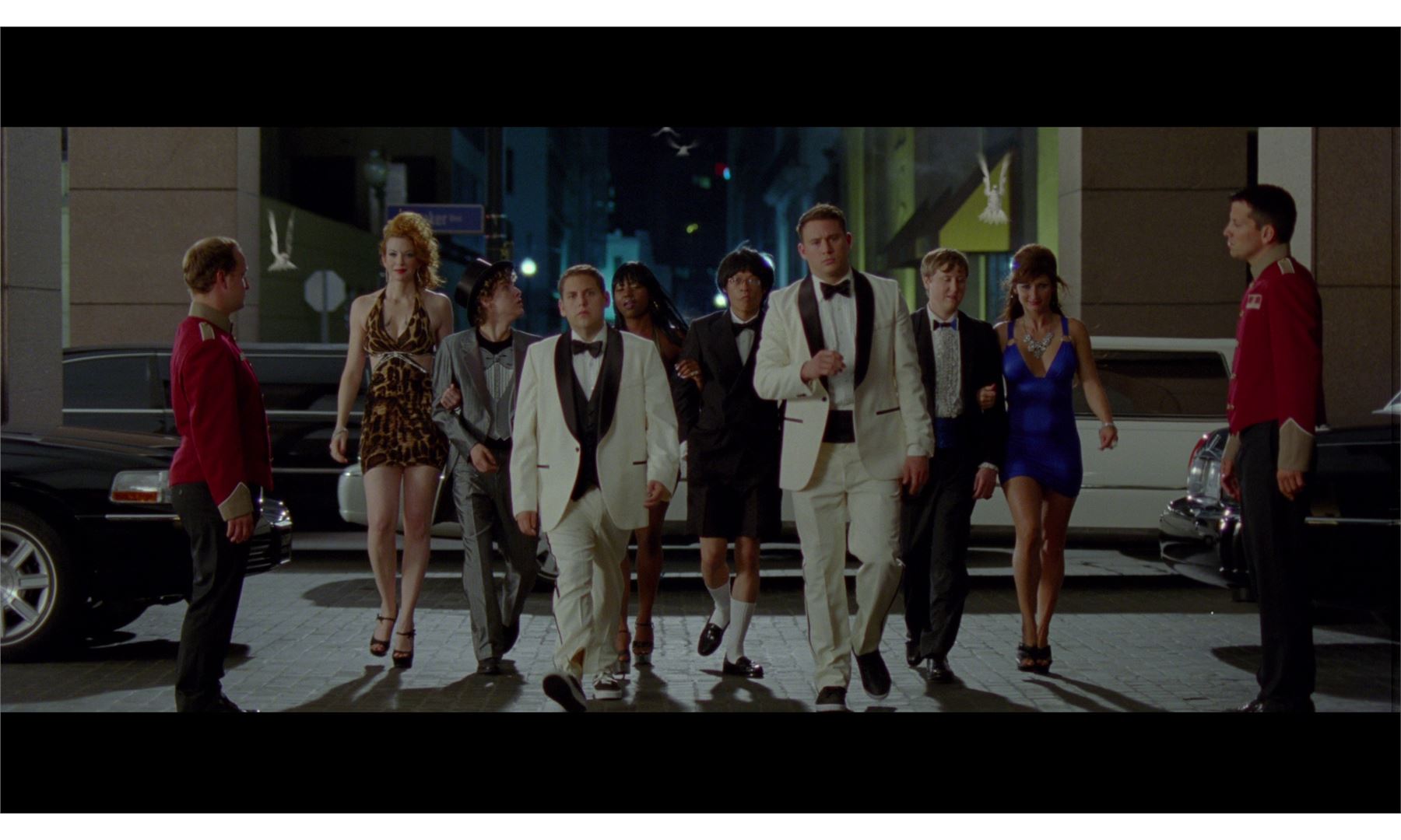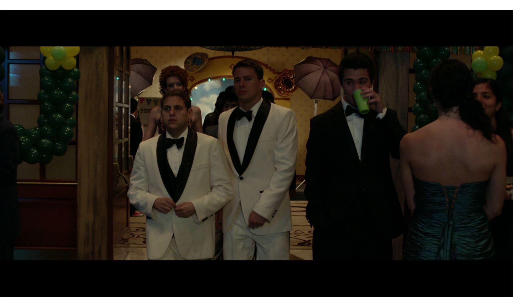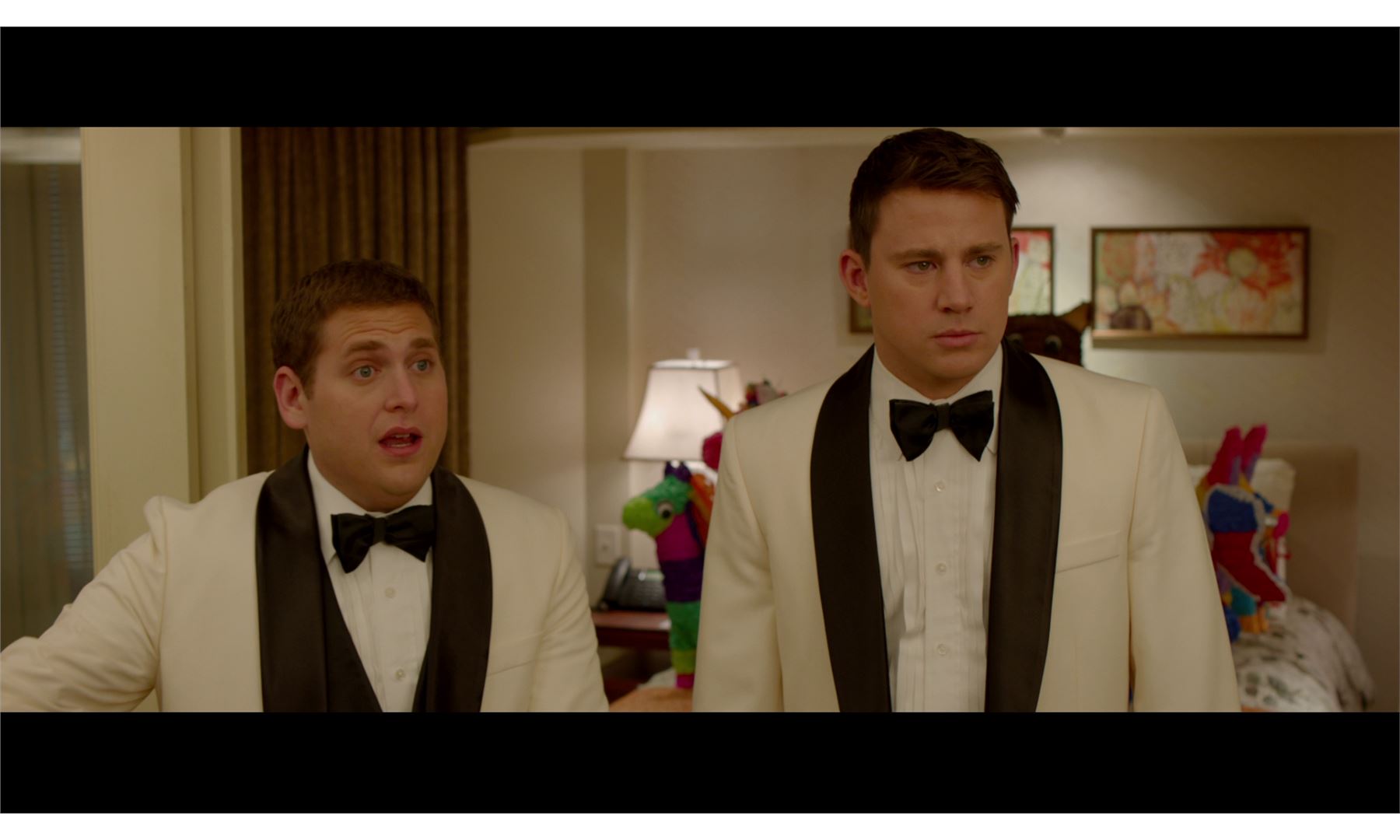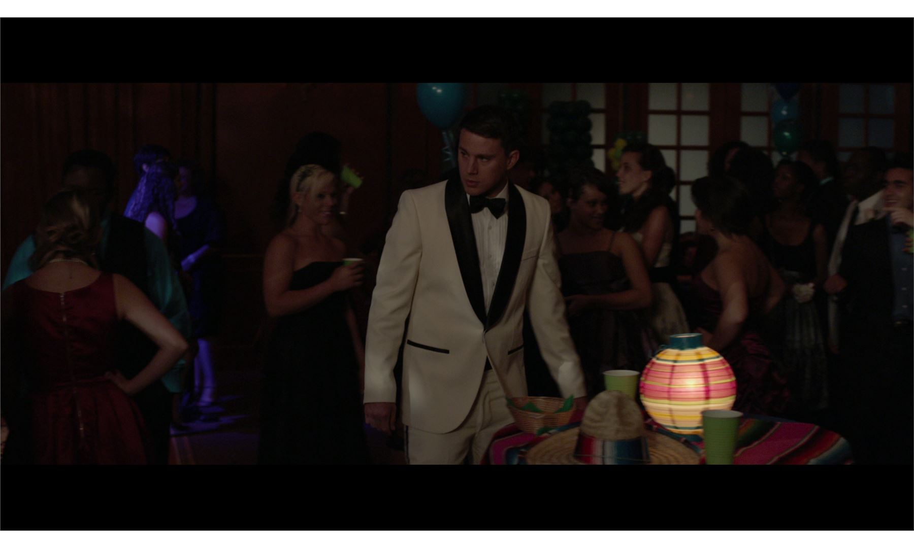 This lot will be auctioned on Wednesday, June 30th. The auction will begin at 9:00am PDT and lots are sold sequentially via live auctioneer; tune in to the live streaming broadcast on auction day to follow the pace. Note other lots in the auction may close on June 29th or July 1st. Jenko's (Channing Tatum) bloodied tuxedo from Phil Lord and Christopher Miller's action comedy 21 Jump Street. Jenko and his partner Schmidt (Jonah Hill) wore matching tuxedos when they went undercover at the Sagan Hill School prom. This costume consists of a white silk-lined wool slim-fit tuxedo jacket (size 16 1/2 - 35) marked "J" with black trim and black fabric-covered buttons, matching tapered pants, and a blood-stained white cotton ruffled dress shirt with bullet holes. It is in good overall condition with some signs of wear from production, including light staining throughout and fraying to the pant hems. Estimate: $800 - 1,200