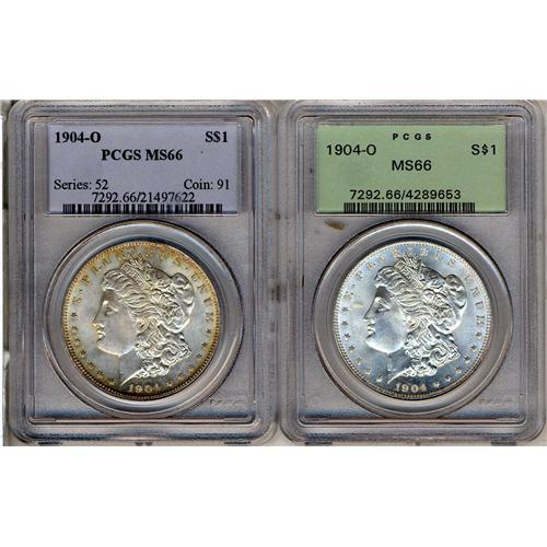 Lot 444 - Lot of Two 1904-O Morgan Dollars PCGS MS66