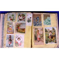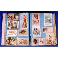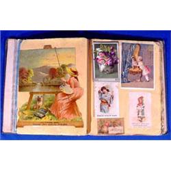 Victorian Trade Cards and Scrap Book. This album has many trade cards consisting of children, animals and women. Many of the images have wear, Ca. 1890. 12.5"x10". Est. $100 - $200.