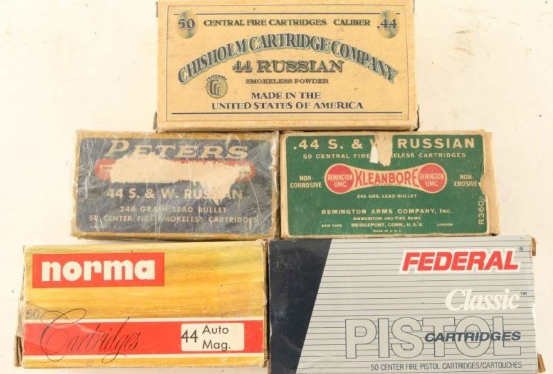 3 boxes 44Russ, 44rem mag, 1 box of 44 auto mag