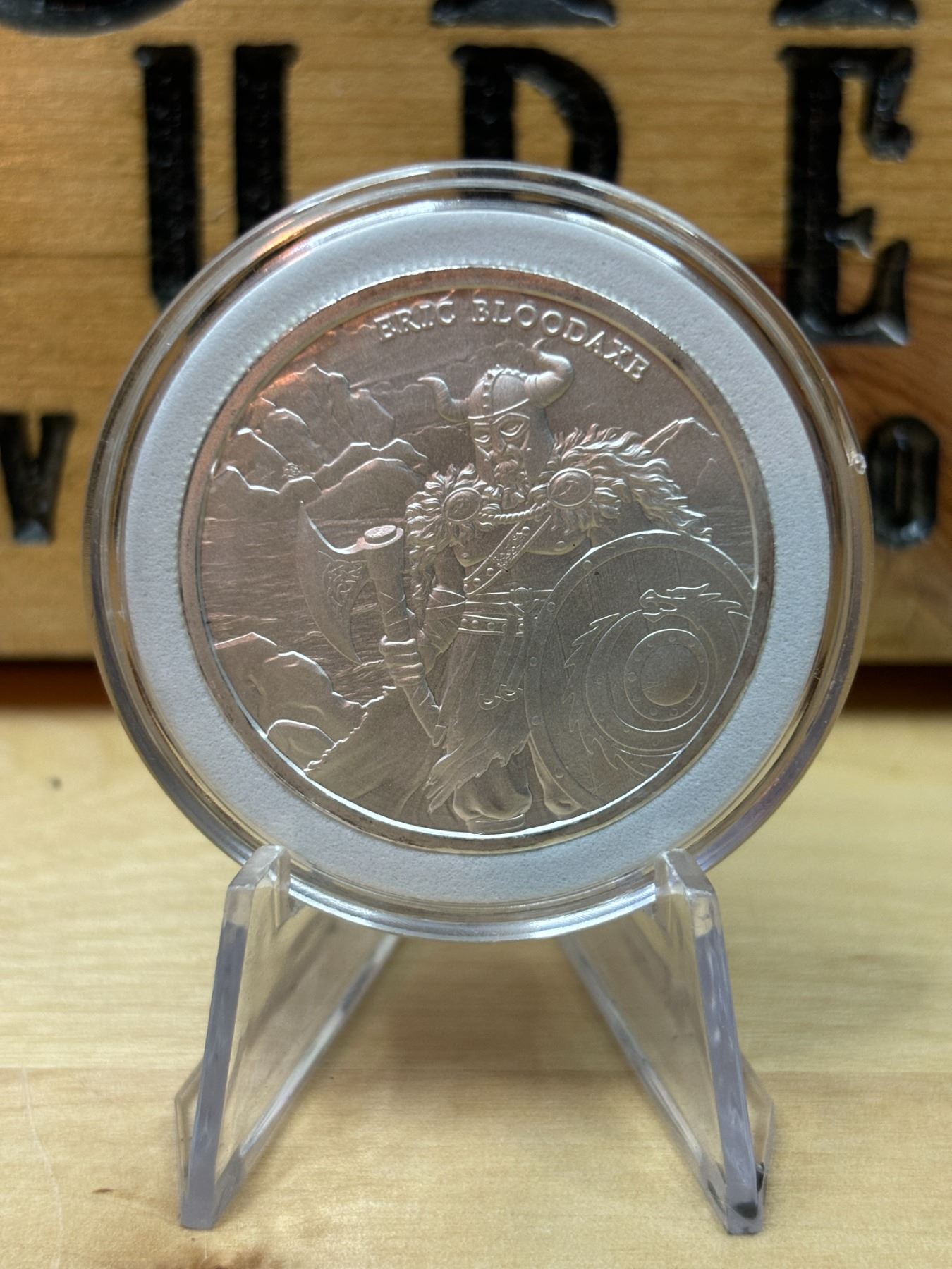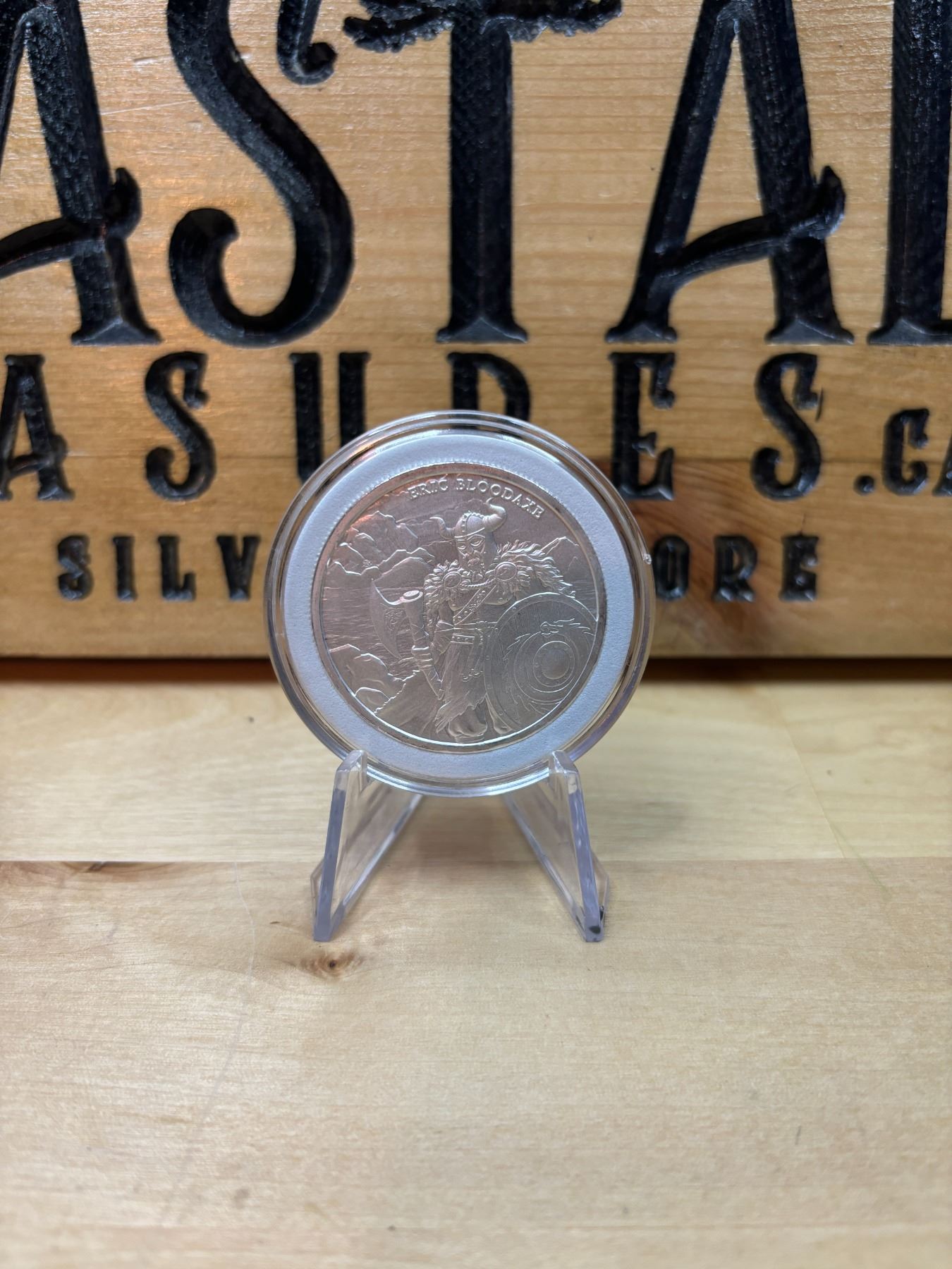The 1 oz Eric Bloodaxe Silver Bar features a striking design inspired by the legendary Viking king. Made from .999 fine silver, it merges historical significance with intrinsic value, making it an excellent choice for collectors and investors alike. This bar captures the spirit of the Viking age, adding a unique touch to any collection.