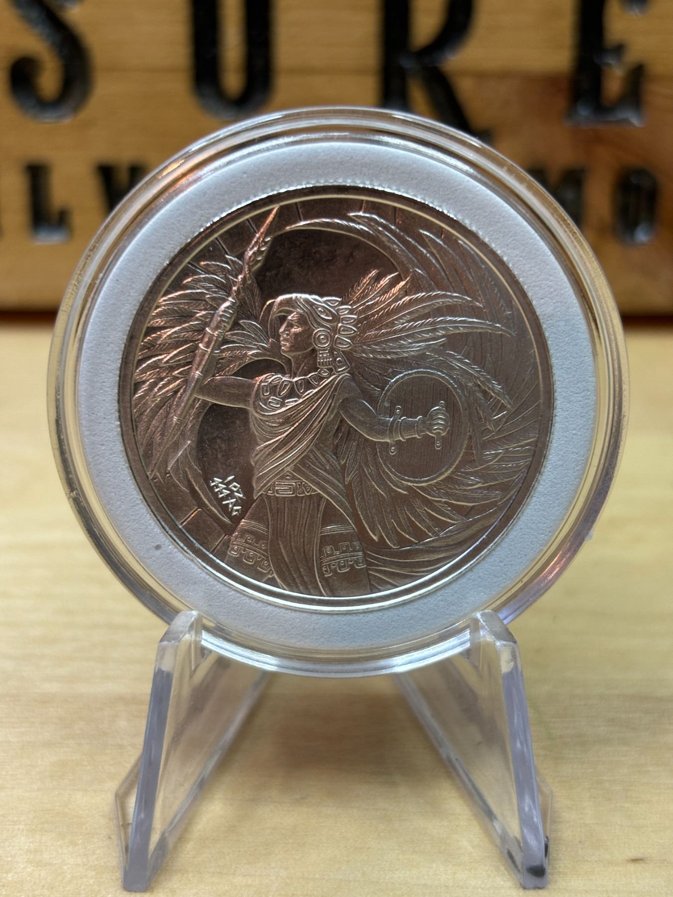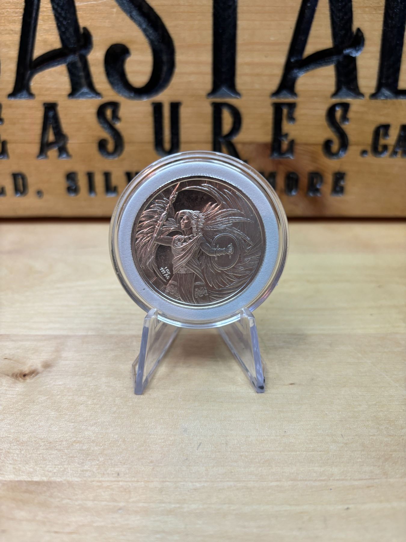 Eagle Warriors Silver Coin is a collectible silver coin that typically contains 1 ounce of .999 fine silver. The design features the Aztec Eagle Warriors, elite soldiers in Aztec society who wore eagle feathers and were revered for their bravery. The coin often depicts an Aztec warrior in full regalia, including a feathered headdress and armor, holding weapons like a spear or shield. This coin is part of a series celebrating Aztec culture and history, and it's popular among collectors due to its rich cultural theme and the value of its silver content.