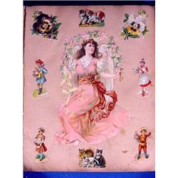 Victorian Scrap Book with Holiday Die Cuts. This album was not completed. There are many Easter related as well as children, flower and themed German die cuts. Ca. 1880. 14" x 11". Est. $80 - $120.