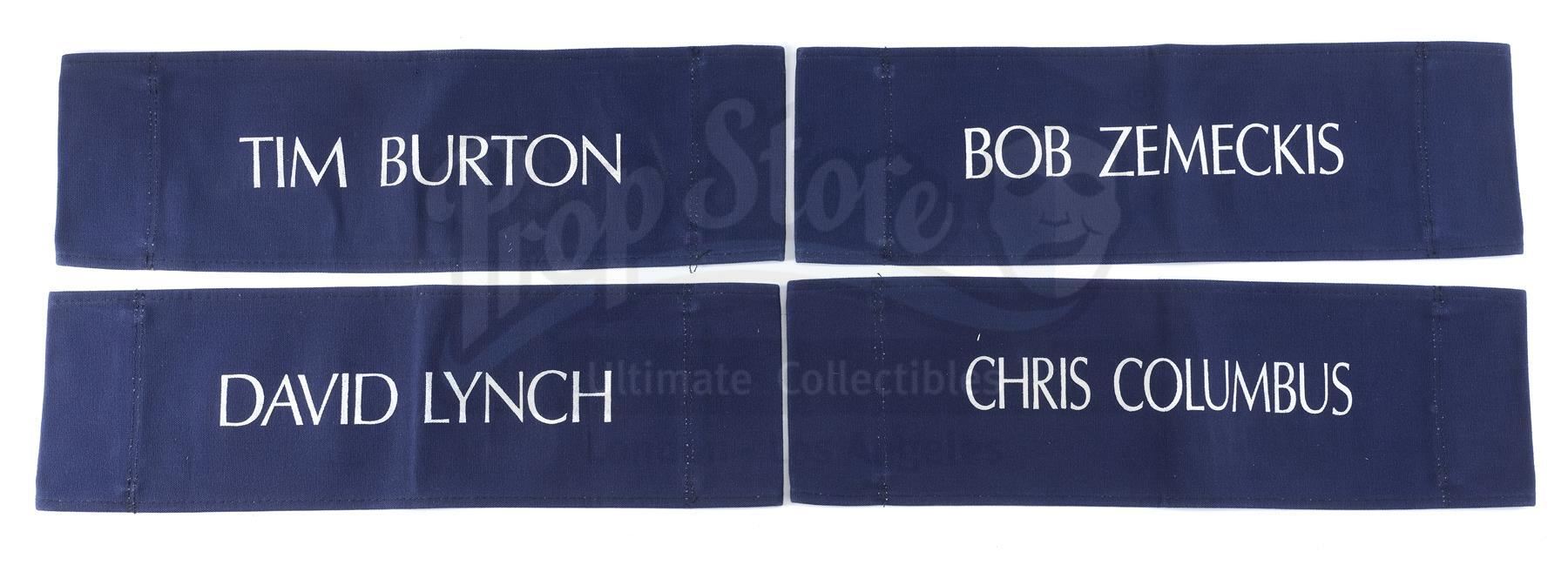 This lot will be auctioned on Wednesday, June 30th. The auction will begin at 9:00am PDT and lots are sold sequentially via live auctioneer; tune in to the live streaming broadcast on auction day to follow the pace. Note other lots in the auction may close on June 29th or July 1st.  Tim Burton, Chris Columbus, David Lynch, and Bob Zemeckis joke chair backs from Barry Sonnenfeld's gothic family comedy The Addams Family. Producer Scott Rudin jokingly teased Barry Sonnenfeld that he wasn't Rudin's first choice for director by putting a different director's name on Sonnenfeld's director's chair each morning. These four canvas chair backs are blue with a white font and feature the names "Tim Burton," "Chris Columbus," "David Lynch," and "Bob Zemeckis." They are in good overall condition with minimal wear from use and age. Dimensions: 11.5" x 7.5" x 1.5" (29.25 cm x 19.25 cm x 4 cm)  Estimate: $800 - 1,200