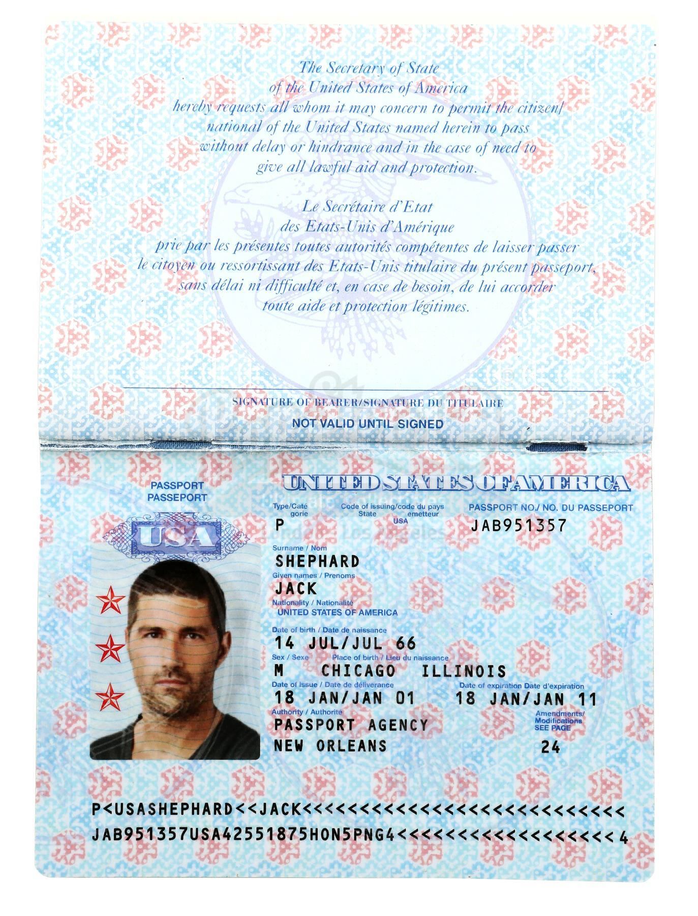 Lot #461 - LOST (T.V. SERIES, 2004-2010) - Jack Shephard's (Matthew Fox) Passport and Ajira Airways