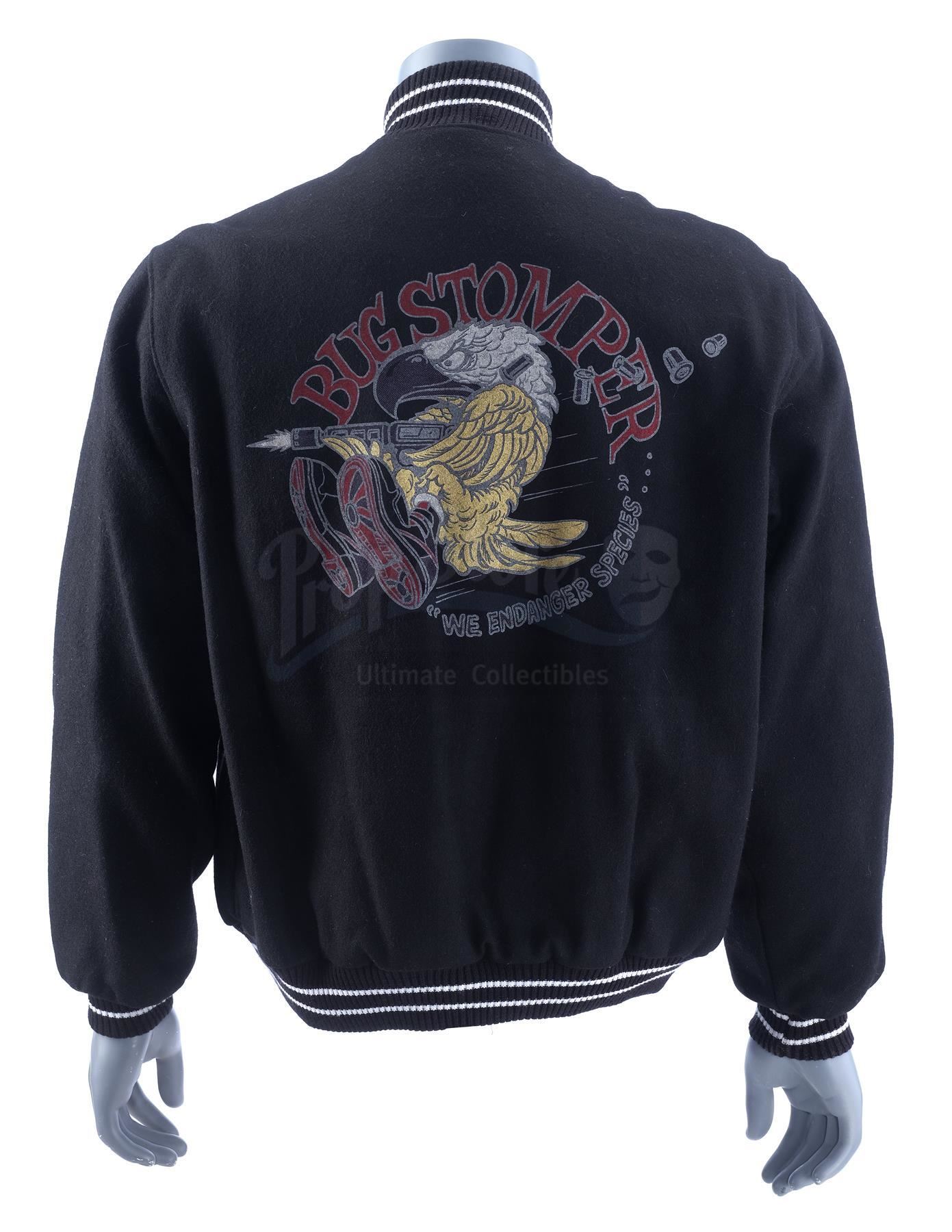 This lot will be auctioned on Wednesday, June 30th. The auction will begin at 9:00am PDT and lots are sold sequentially via live auctioneer; tune in to the live streaming broadcast on auction day to follow the pace. Note other lots in the auction may close on June 29th or July 1st. A navy Bug Stomper crew jacket from the production of James Cameron's sci-fi horror sequel Aliens. Bomber jackets like these were gifted to crew members who worked on the film. This navy blue woolen bomber jacket (size L) with six white metal snap buttons and blue silk lining is emblazoned "ALIENS" on front with the Bug Stomper logo designed by conceptual designer Ron Cobb - a screaming eagle in combat boots firing an assault rifle and featuring the slogan "Bug Stomper: We Endanger Species" - on the reverse. The jacket is in excellent overall condition with minimal signs of wear. Estimate: $800 - 1,200