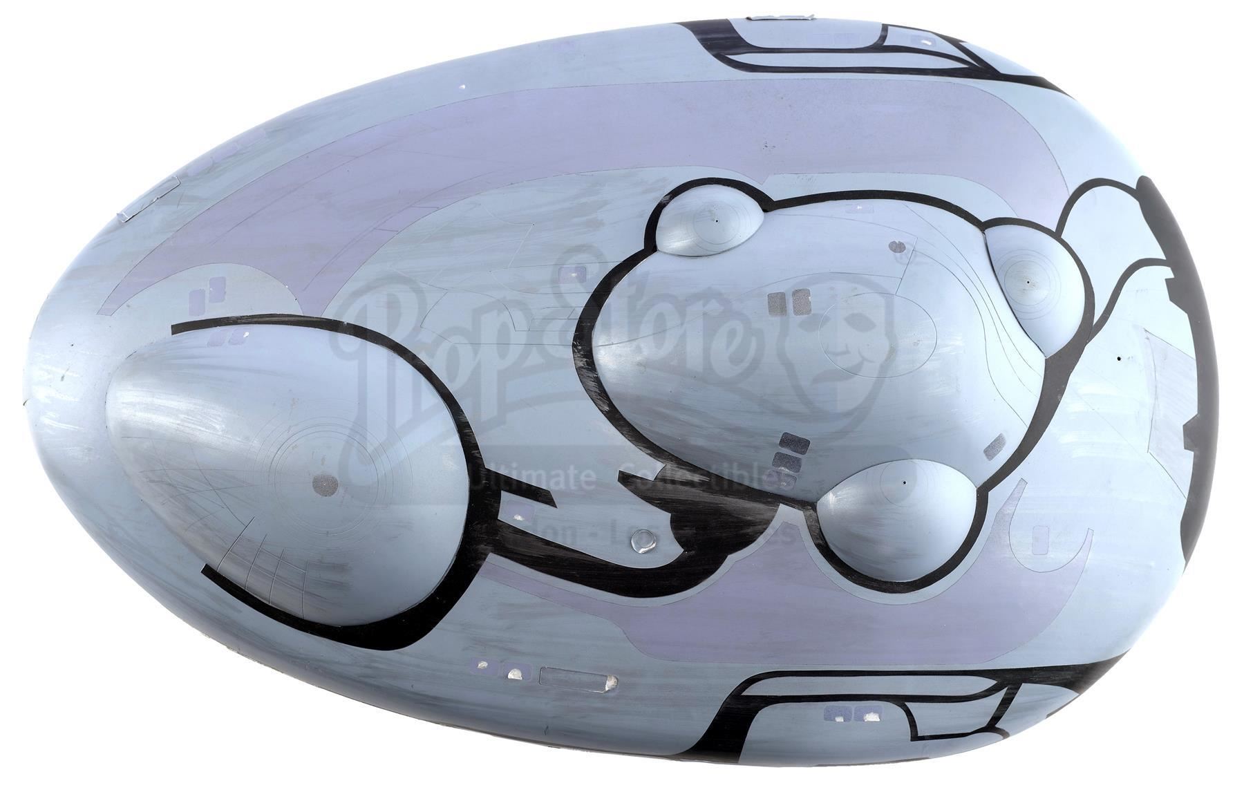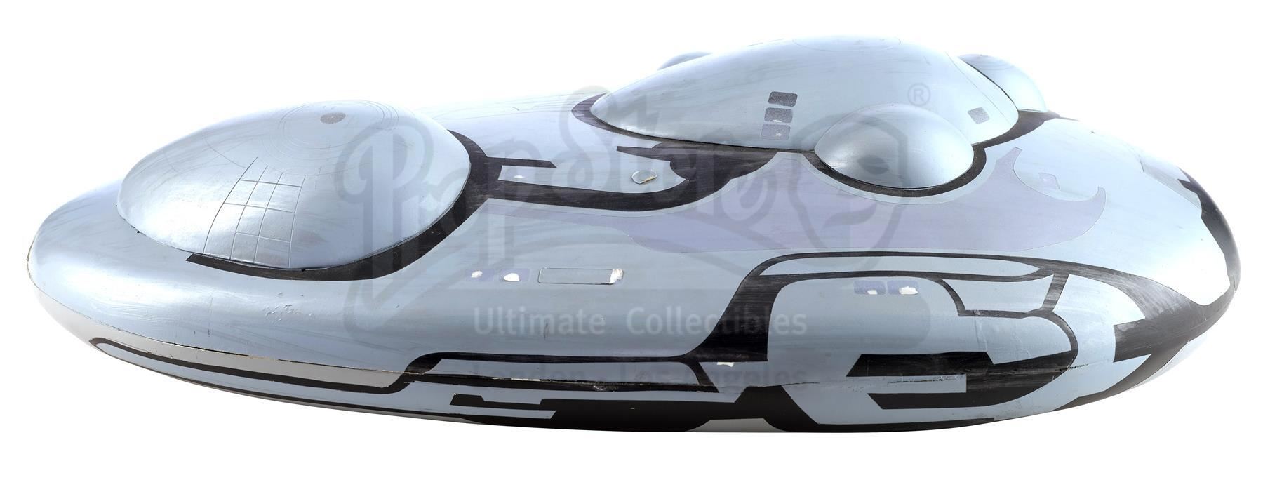 A Jupiter II scanning model from the production of Stephen Hopkins' sci-fi action adventure Lost In Space. Based on Irwin Allen's cult classic 1965 television series of the same name, the film followed the Robinson family, Major Don West (Matt LeBlanc), and Dr. Zachary Smith (Gary Oldman) as they found themselves stranded in space following Smith's sabotage aboard the Jupiter II. Scanning models, such as this one of the Jupiter II, were constructed and scanned to transfer spaceship designs from physical builds to digital models.