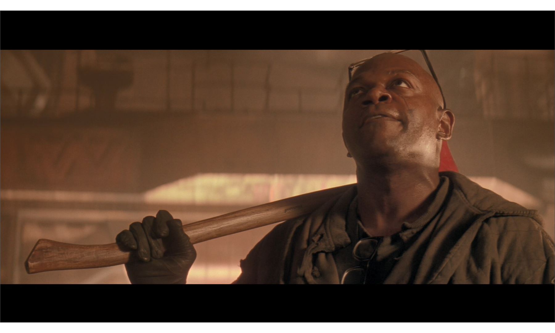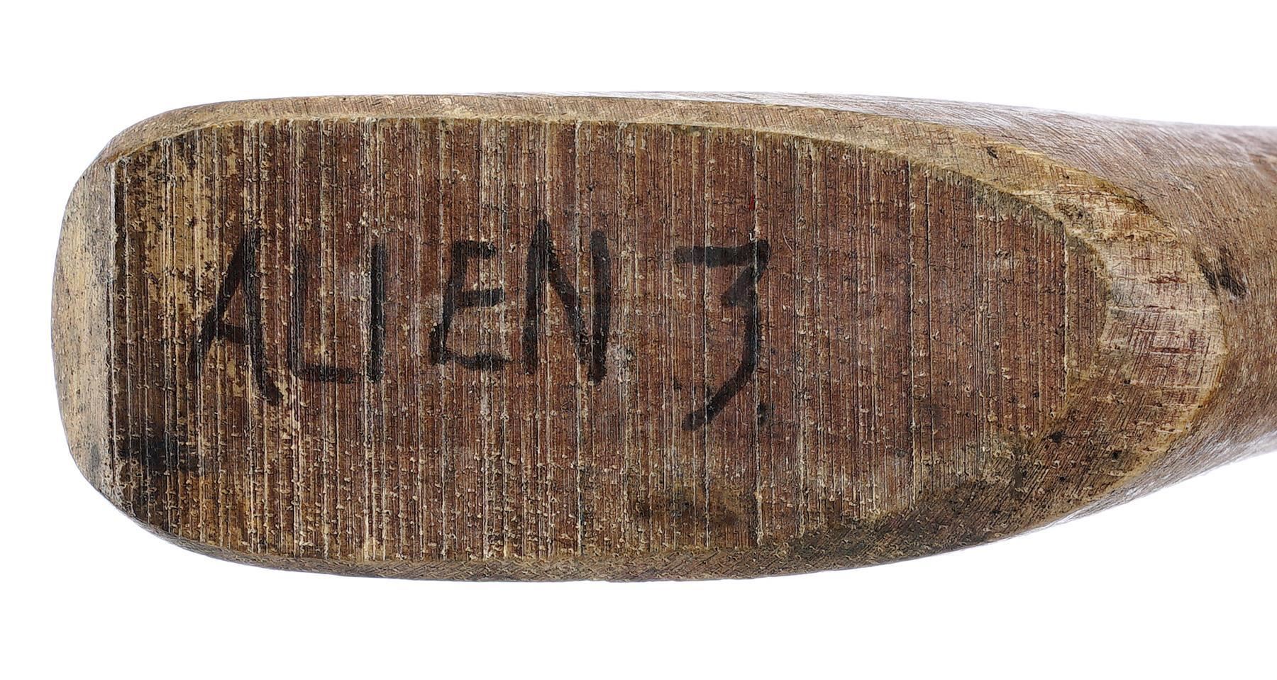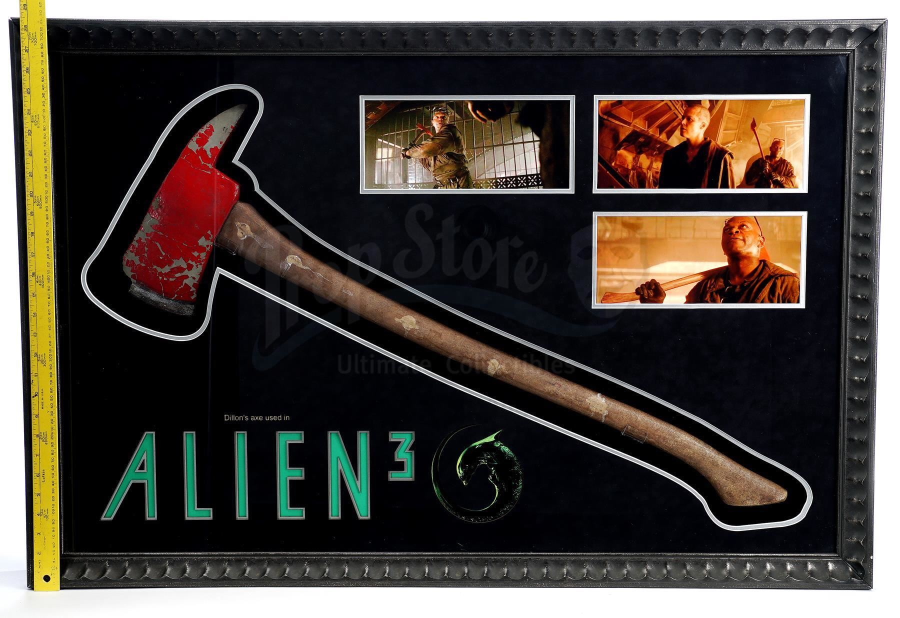 This lot will be auctioned on Wednesday, June 30th. The auction will begin at 9:00am PDT and lots are sold sequentially via live auctioneer; tune in to the live streaming broadcast on auction day to follow the pace. Note other lots in the auction may close on June 29th or July 1st.  Dillon's (Charles S. Dutton) axe from David Fincher's sci-fi horror thriller Alien 3. The spiritual leader of a group of prisoners-turned-monks on Fury 161, Dillon wielded his axe as he battled new types of aliens that landed on the planet with Ripley (Sigourney Weaver).  This axe features a wood-color resin handle affixed to a rubber red blade with a metal-color toe, heel, and bit. It is displayed under plexiglass in a black wooden frame with a mat that features the film's title, item description, and images of the axe in the film. It exhibits signs of use and wear throughout including some aging and missing elements on the blade, but remains in fair overall condition. Dimensions (displayed): 43" x 29" x 3.75" (109.25 cm x 73.75 cm x 9.5 cm)  Estimate: $2,000 - 3,000