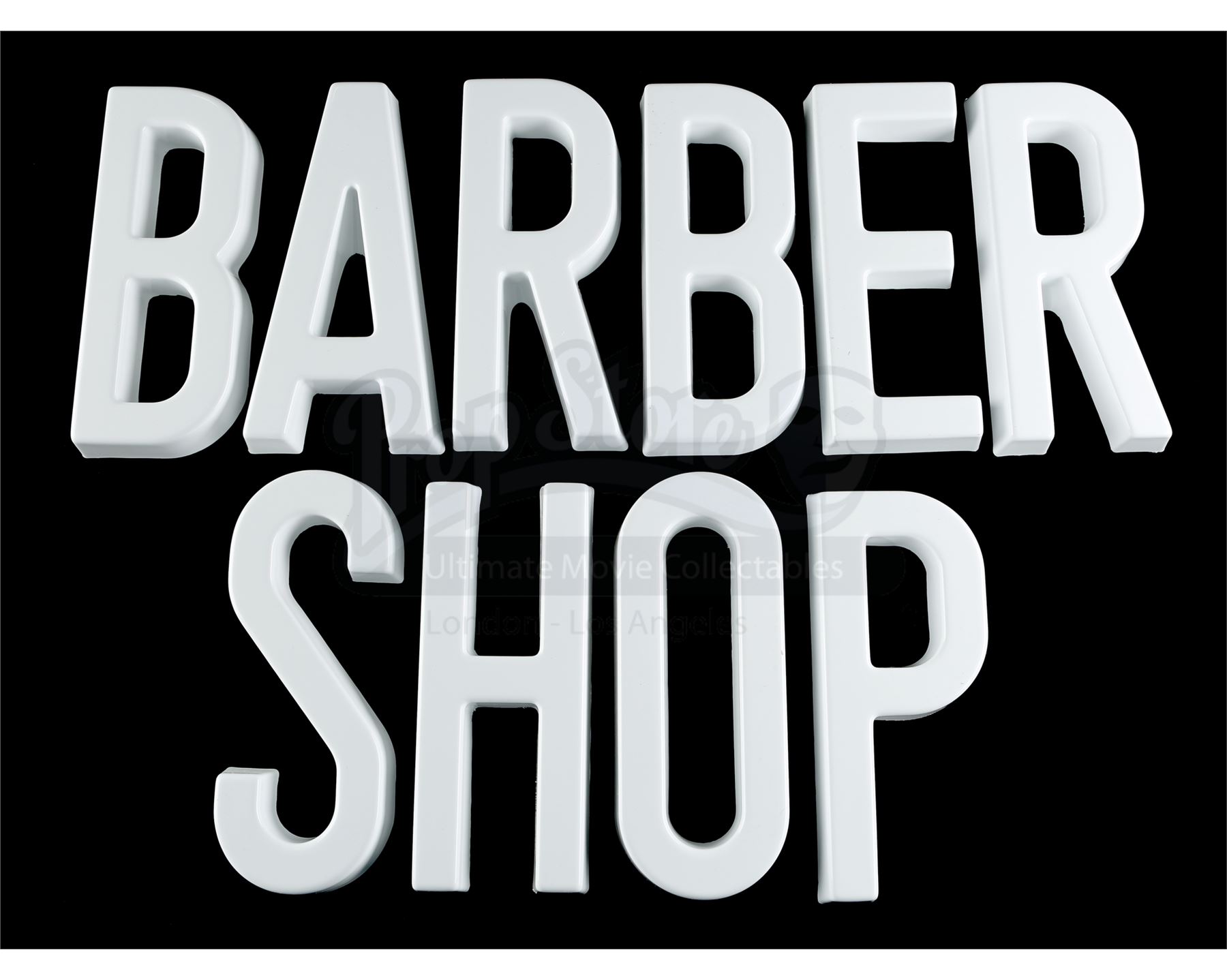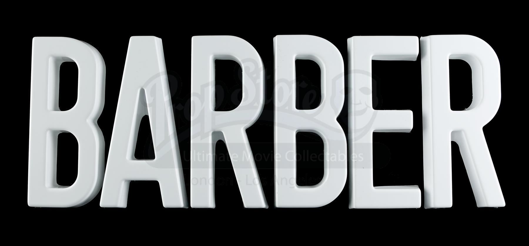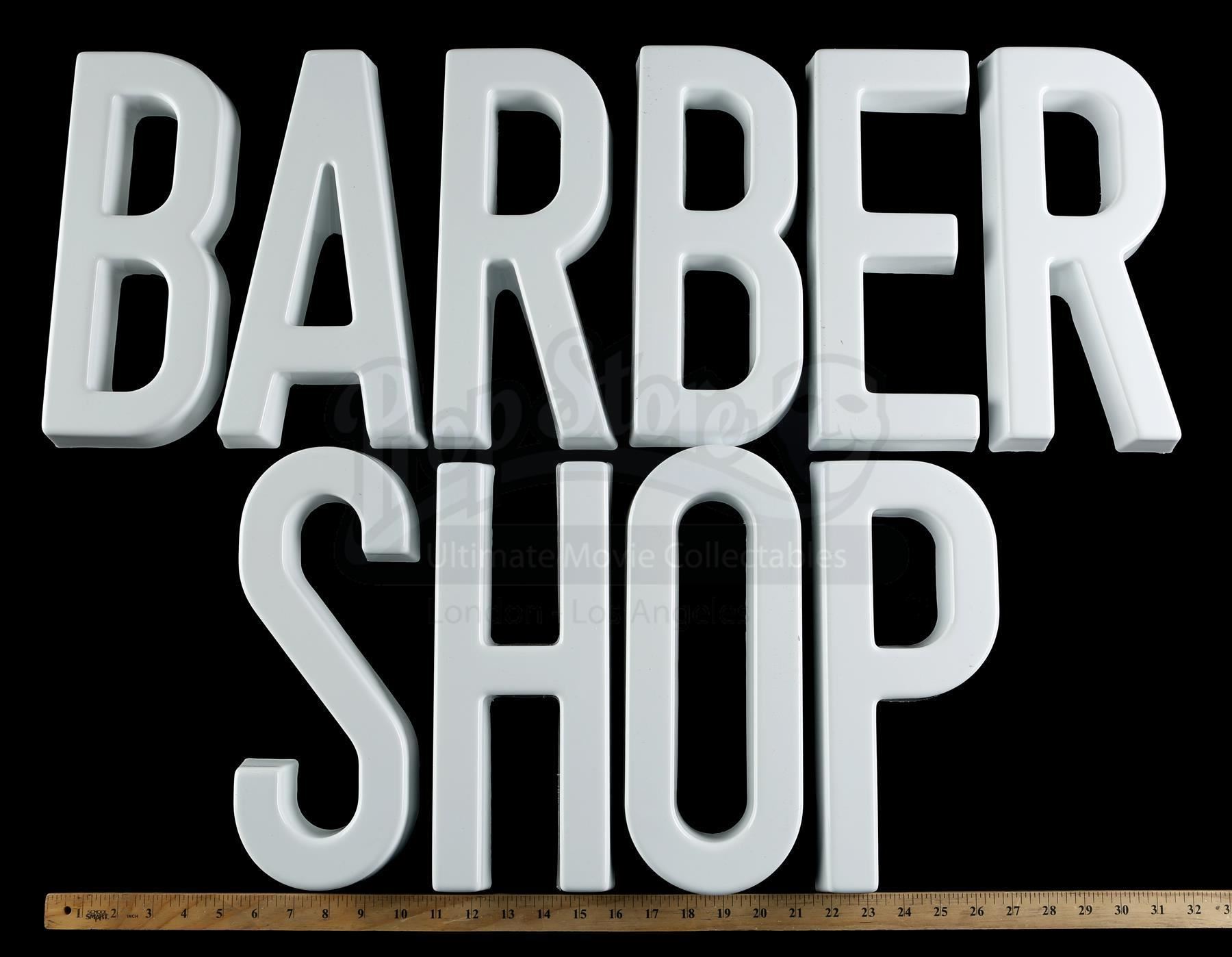 Pop’s ‘BARBER SHOP’ block letters from Seasons 1 and 2 of Marvel’s Luke Cage. Pop’s Barber Shop is seen throughout the series as Luke Cage’s base of operations. This lot consists of 10 individual white plastic letters with clear plastic knobs on the interiors for mounting. These letters can be arranged to spell the words ‘BARBER SHOP’. The lot is in good overall condition with minor wear from production.