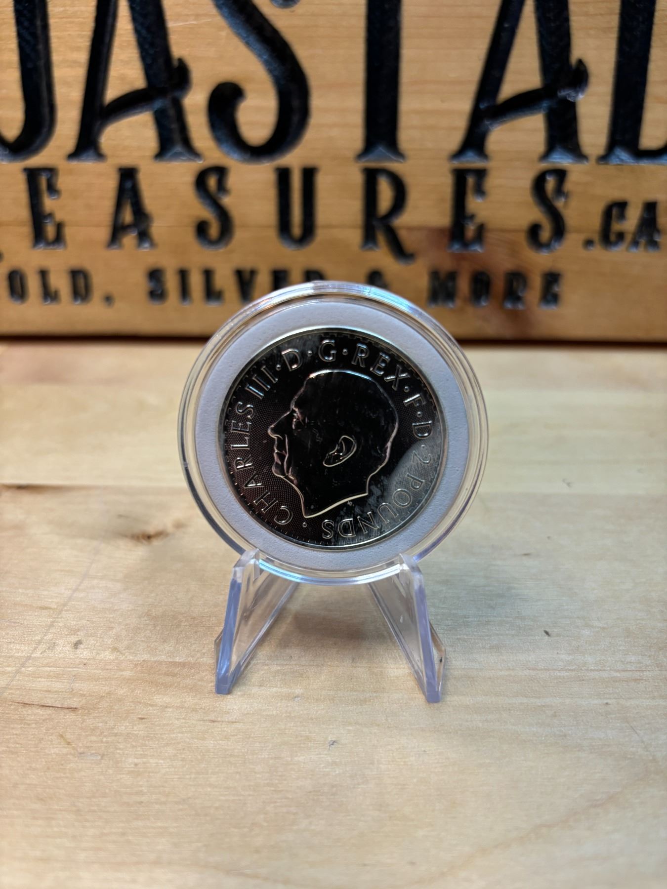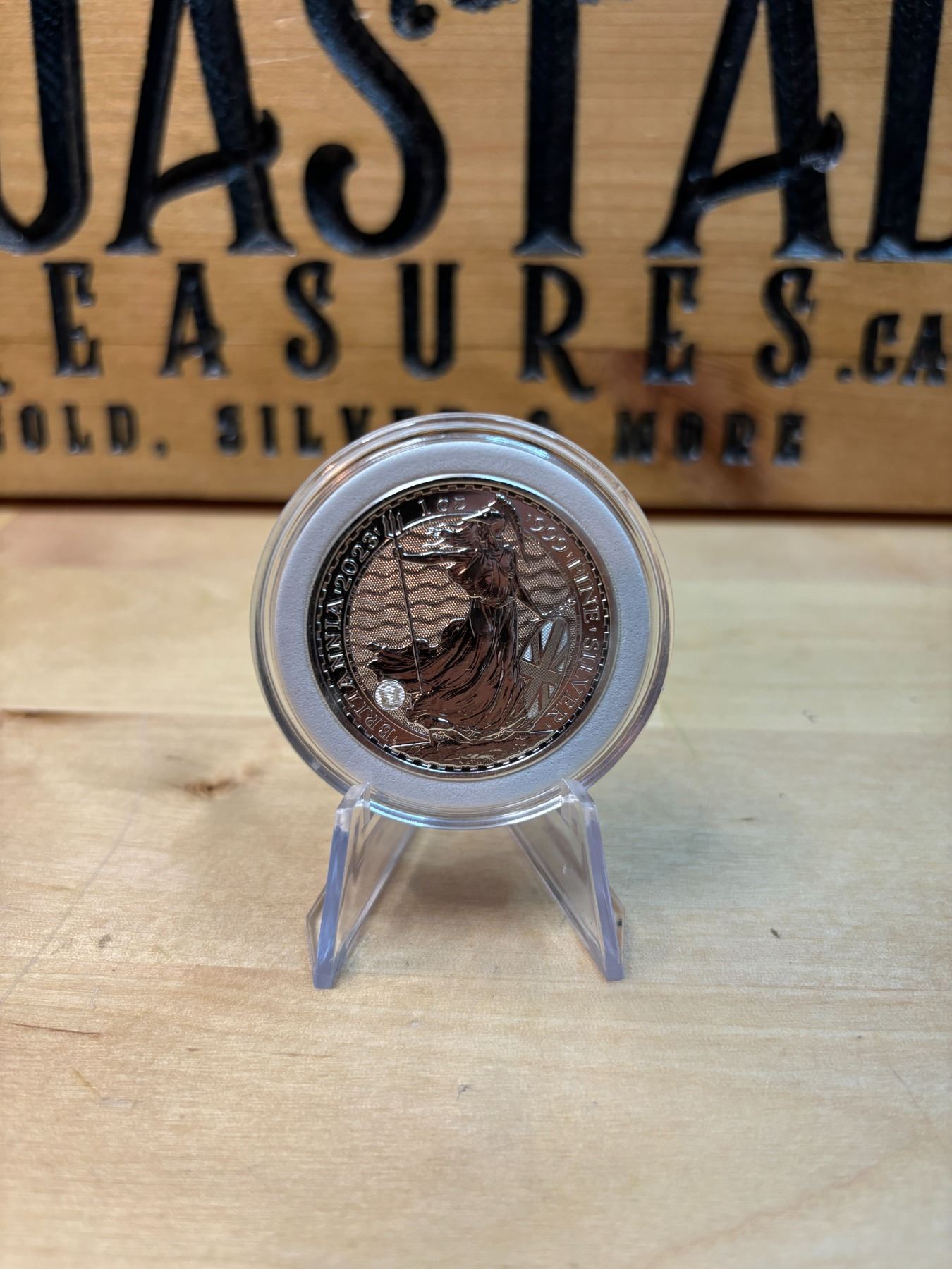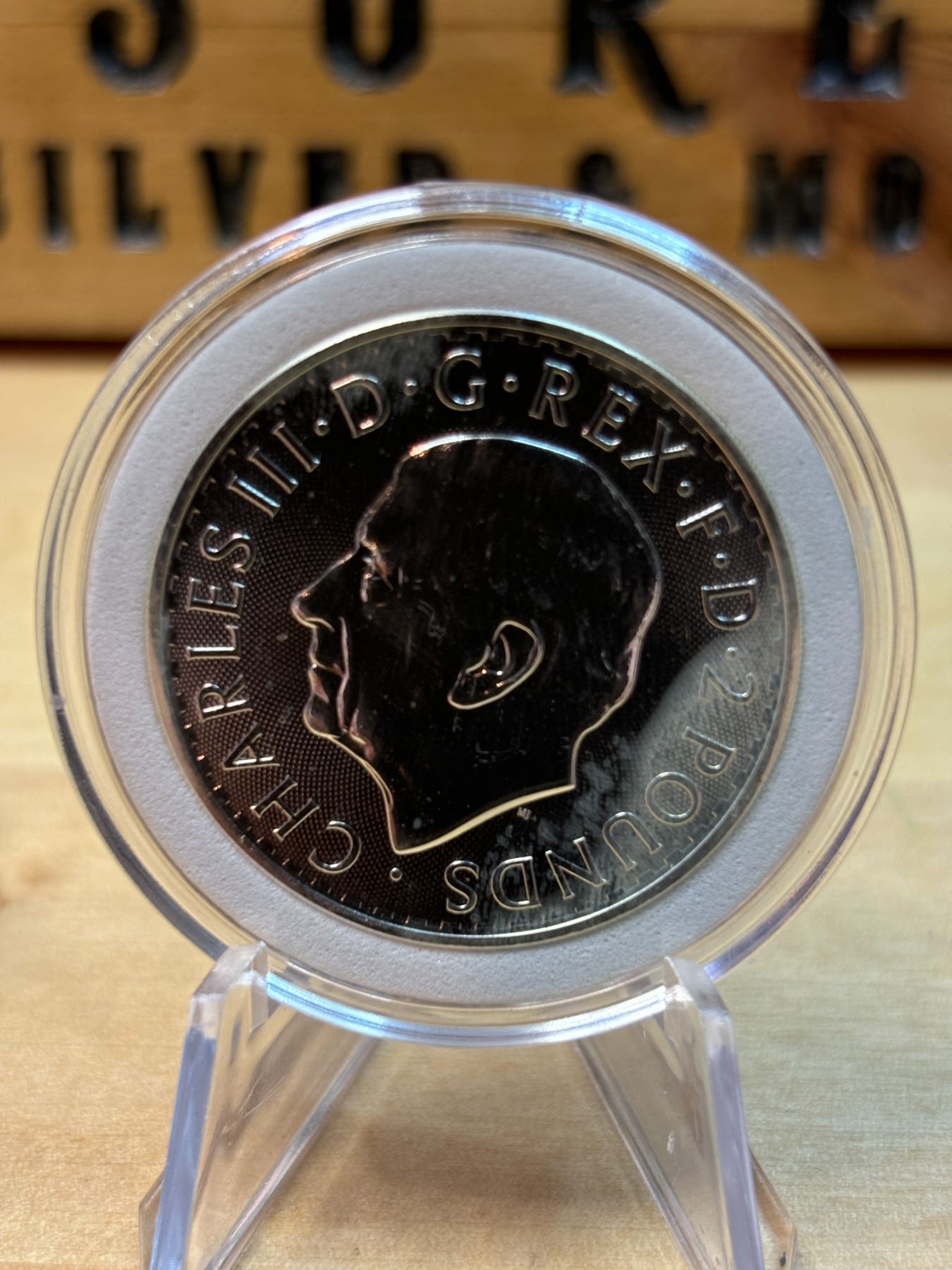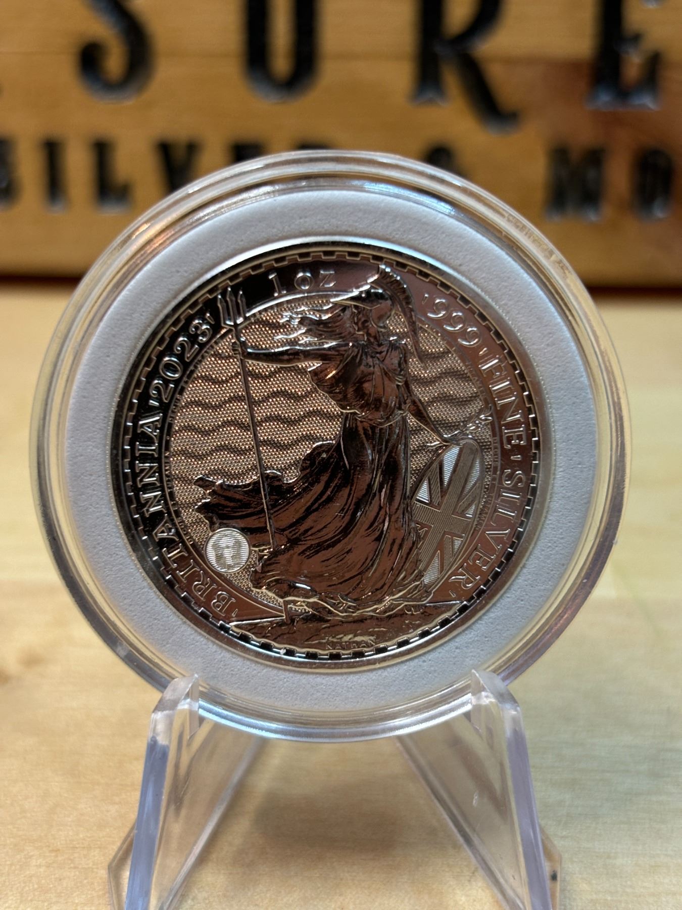 The 1 oz Britannia 2023 Silver Coin is part of the popular Britannia series, produced by the Royal Mint. It contains 1 ounce of .999 fine silver and features the iconic image of Britannia, symbolizing strength and resilience. The 2023 edition features an updated design with enhanced security features, such as a new background wave pattern and a holographic foil that changes in the light, making it more difficult to counterfeit. The coin is widely sought after by collectors and investors alike.