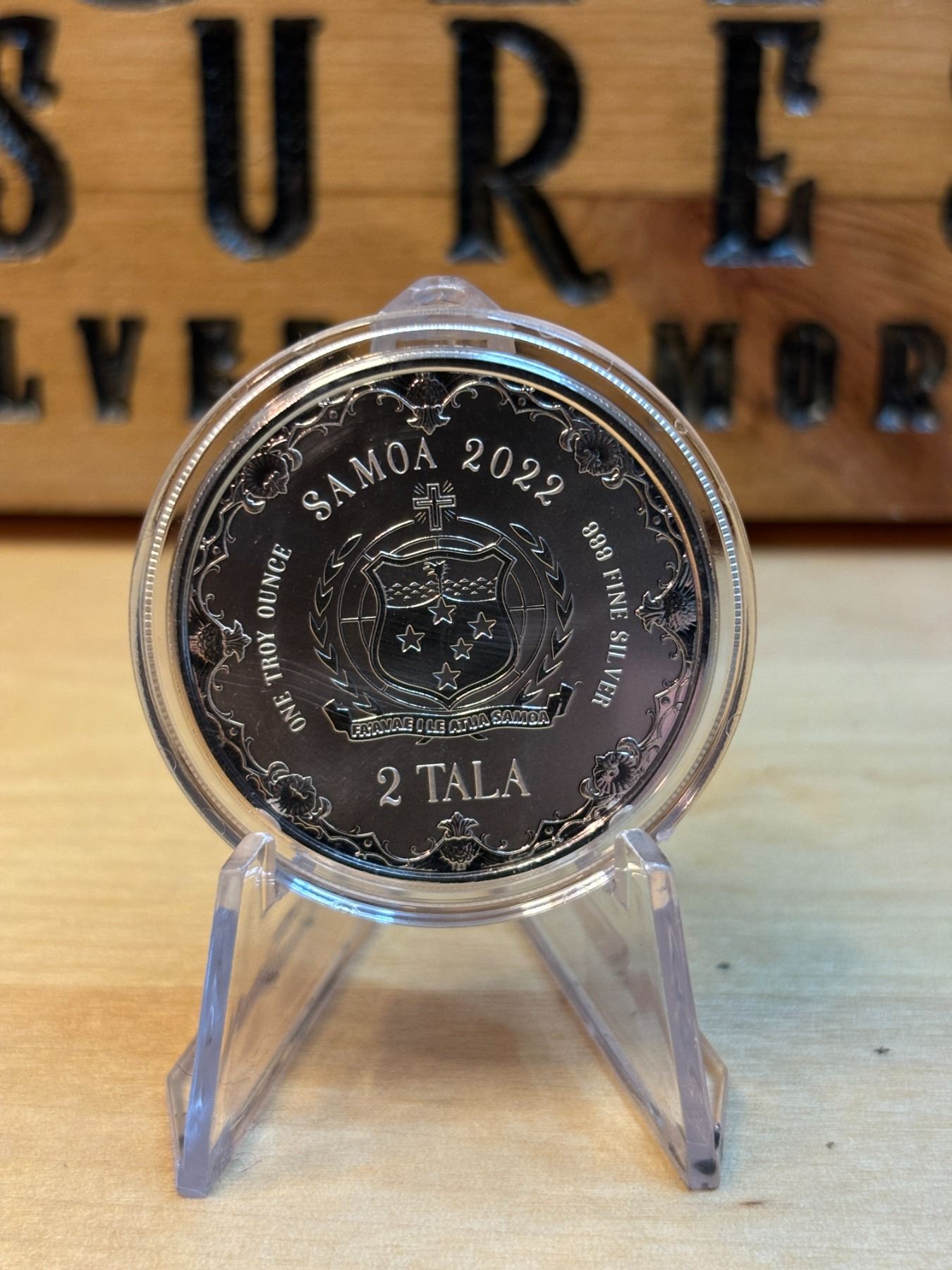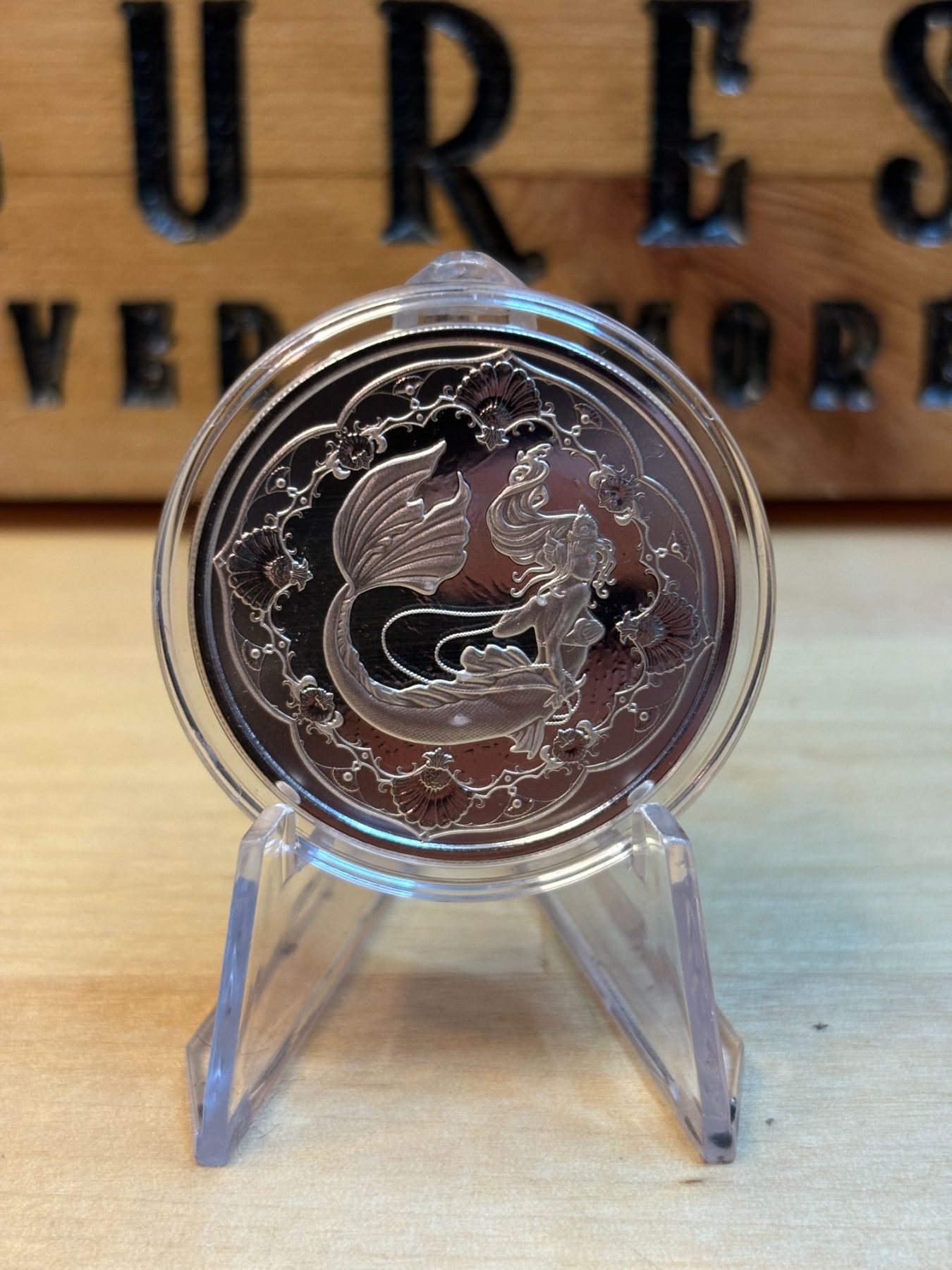 The 1 oz Mermaid silver round from Samoa is made from .999 fine silver and typically features a detailed design of a mermaid, often with artistic elements reflecting the mythical creature's allure. Issued by Samoa, these rounds are popular with collectors and those who appreciate unique and thematic designs. The value depends on the current price of silver and collector interest.