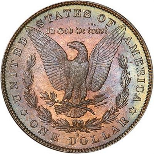 1881-S Morgan Dollar. The devices are boldly struck. A simply exquisite Gem, the original snow white cartwheel surface must have given way grudgingly to the marvelous toning that accompanied its passage through the last 124 years! Surfaces seem to rock to-and-fro with full textured luster. (#7130)