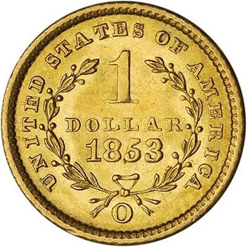 1853-O $1 Gold Liberty. This warmly colored example displays beams of golden metallic detail in virtually all areas and is much scarcer than the Philadelphia Mint strikes. Well worth your attention. (#7524)