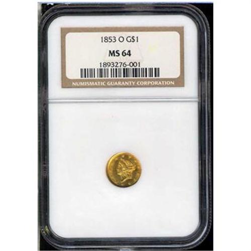 Lot 475 - 1853-O $1 Gold Liberty NGC MS64