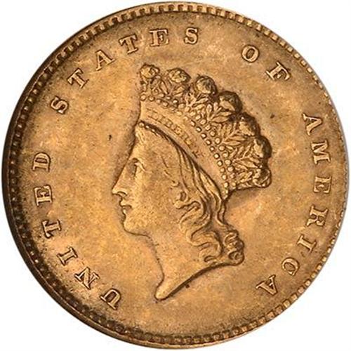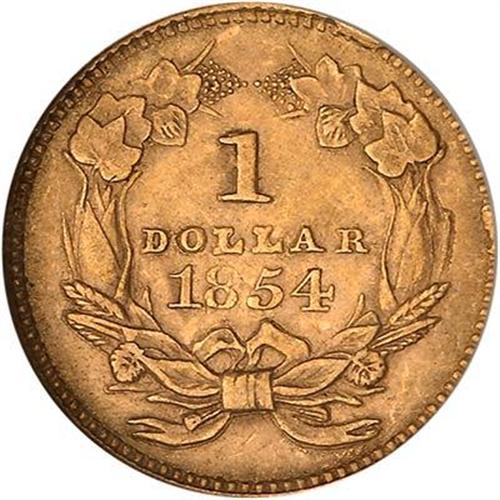 1854 Type 2 $1 Gold Indian. Scarce Type 2 design with abundant mint frost everywhere. (#7531)