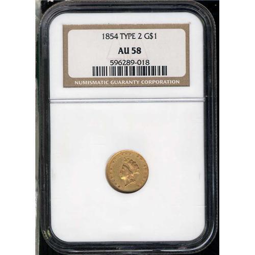 Lot 477 - 1854 Type 2 $1 Gold Indian NGC AU58