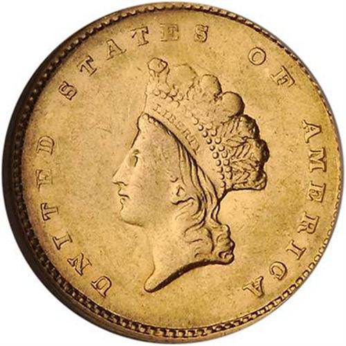 1855 $1 Gold Indian. Lustrous but weakly struck example of the three-year Type 2 design. (#7532)