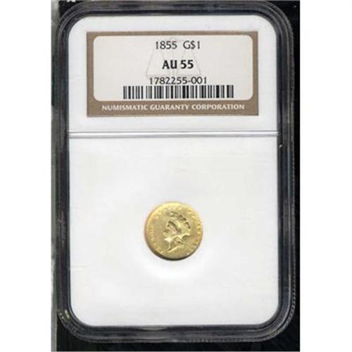 Lot 478 - 1855 $1 Gold Indian NGC AU55
