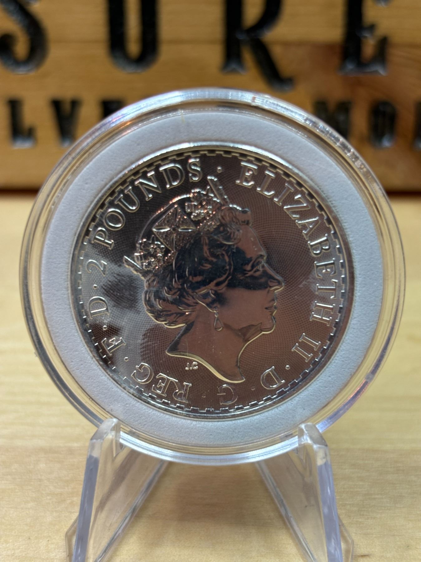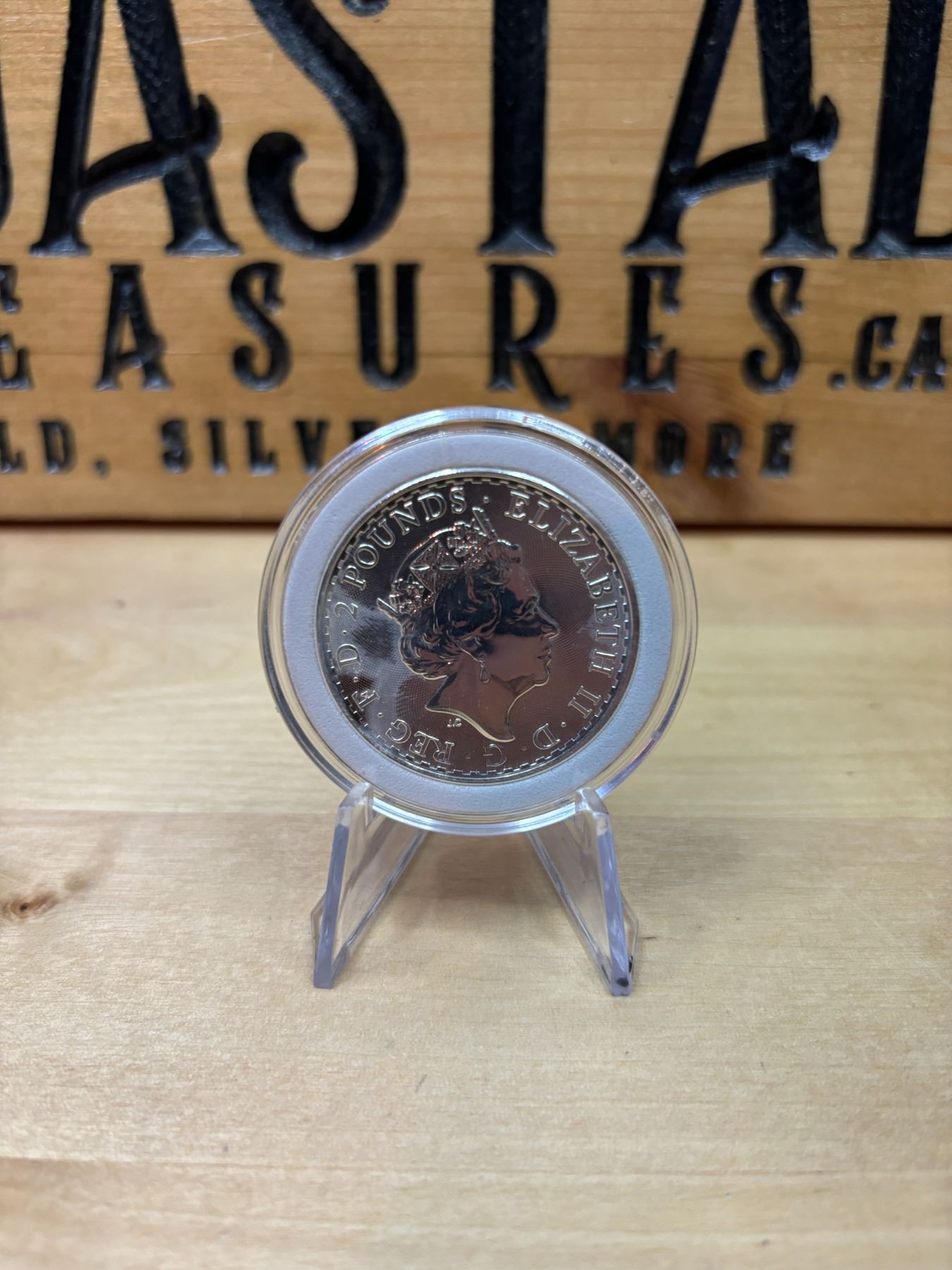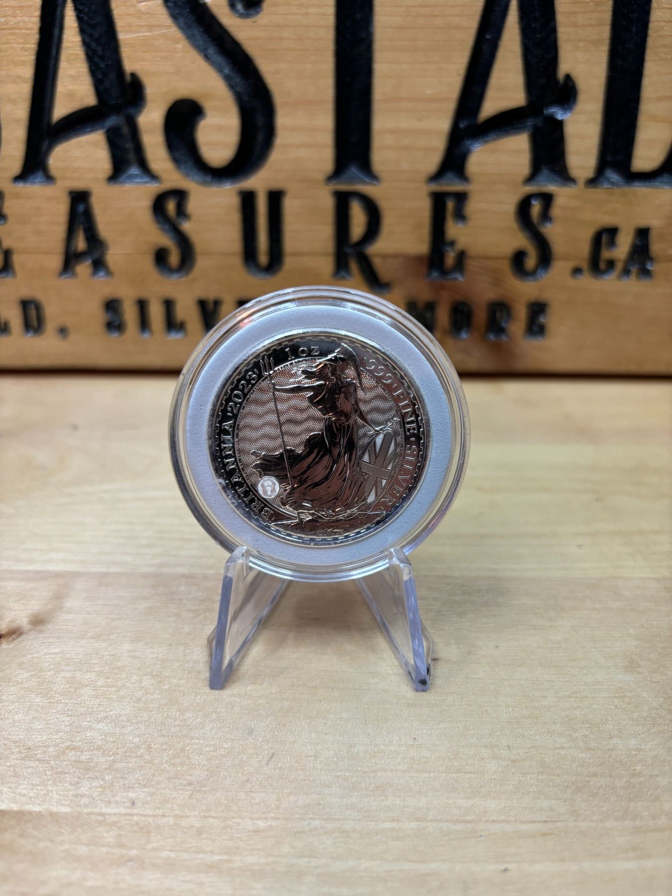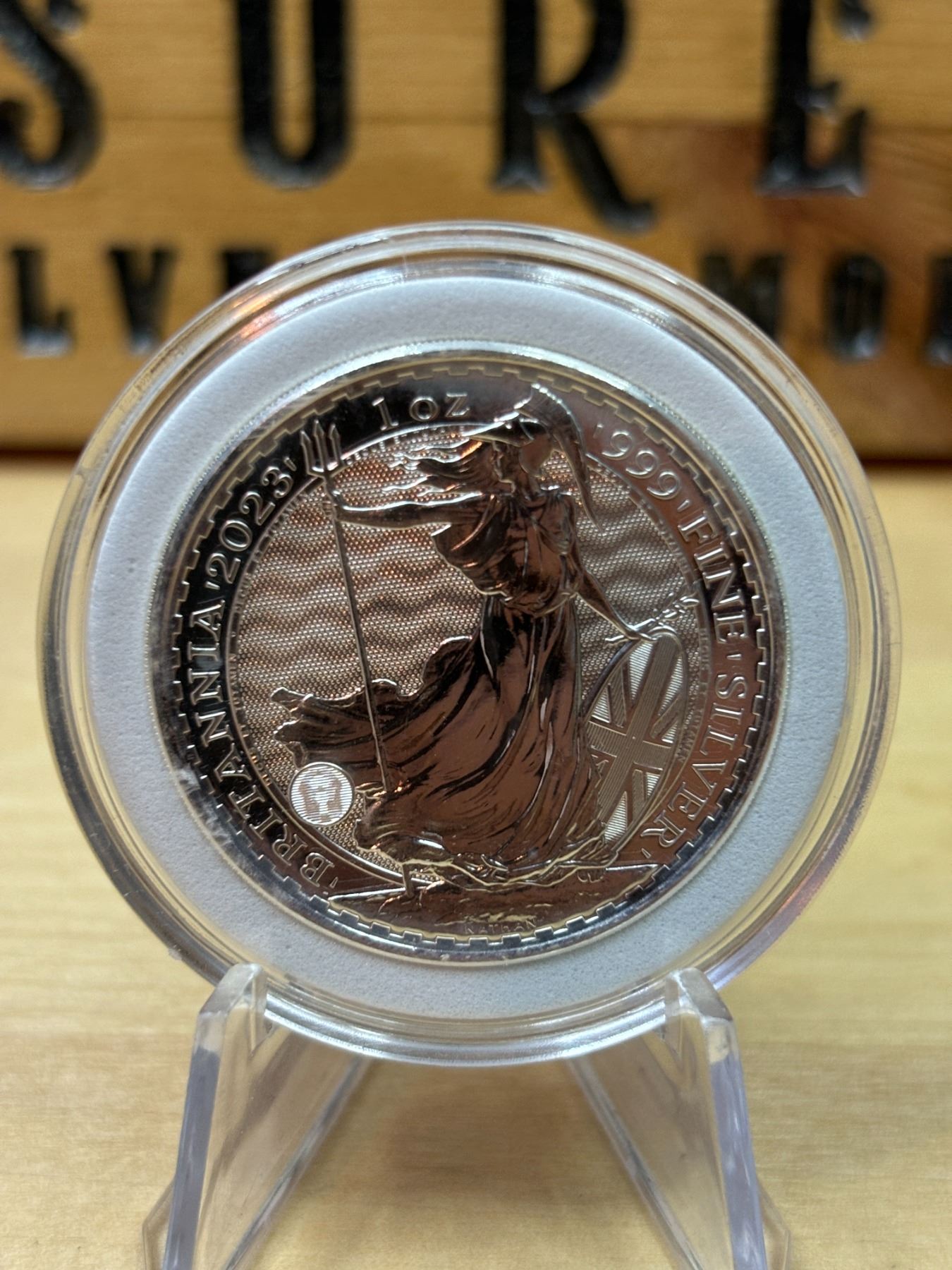 The 1 oz Britannia 2023 Silver Coin is part of the popular Britannia series, produced by the Royal Mint. It contains 1 ounce of .999 fine silver and features the iconic image of Britannia, symbolizing strength and resilience. The 2023 edition features an updated design with enhanced security features, such as a new background wave pattern and a holographic foil that changes in the light, making it more difficult to counterfeit. The coin is widely sought after by collectors and investors alike.