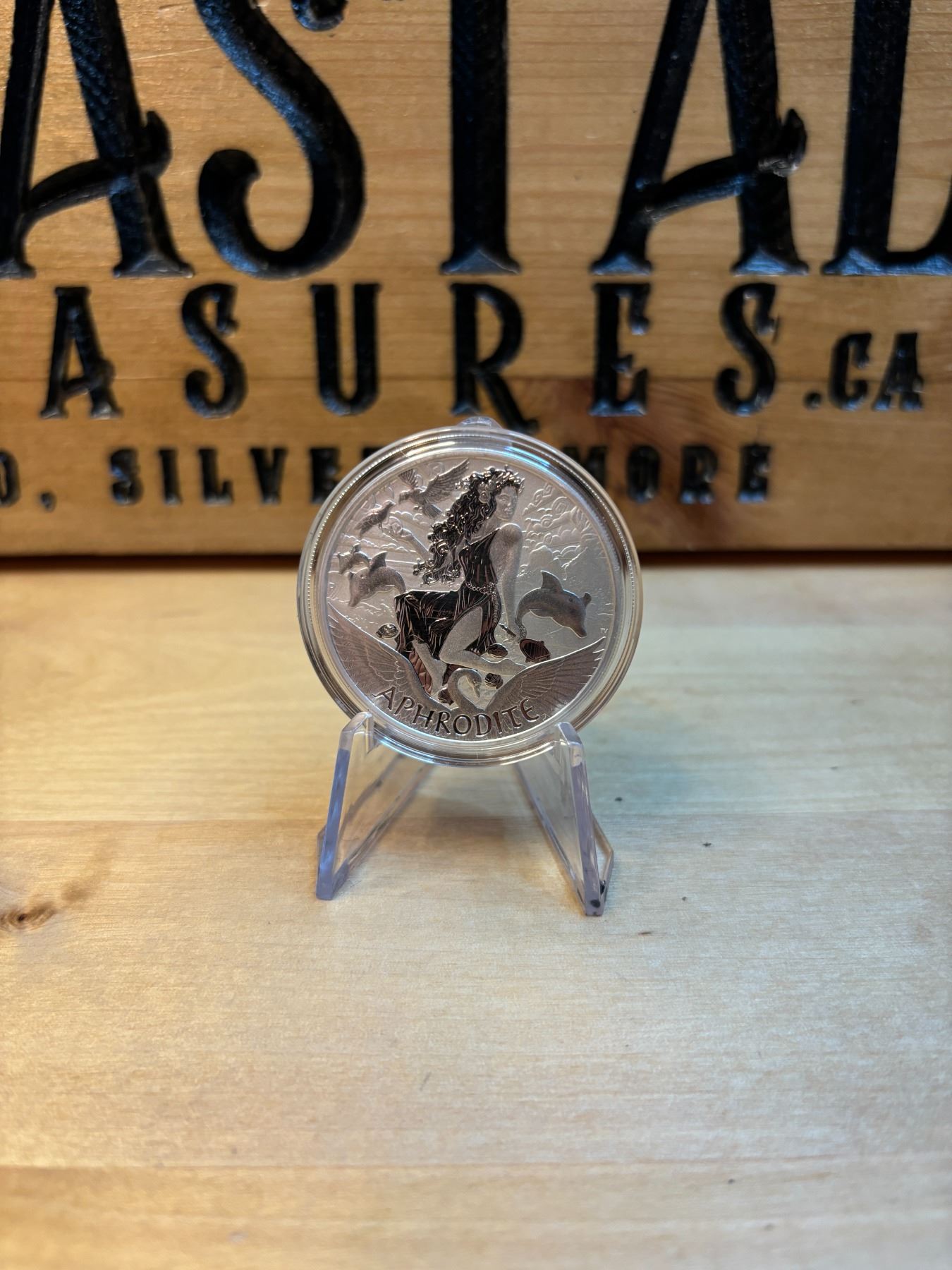 The 1 oz Tuvalu Aphrodite Silver Coin is a stunning collectible coin made from 1 ounce of .999 fine silver. Issued by the Perth Mint on behalf of Tuvalu, a small island nation in the Pacific, this coin features a beautifully detailed design of the ancient Greek goddess Aphrodite, known for her association with love and beauty. The reverse often depicts a representation of Aphrodite, while the obverse typically showcases the effigy of Queen Elizabeth II, the coin's denomination, and other minting details. These coins are popular among collectors due to their artistic design, high purity, and connection to classical mythology, making them highly sought after in both the numismatic and silver investment communities.