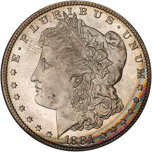 1881-S Morgan Dollar. Attractrive color; impressive detail; flashy luster all around. A jewel of a coin, simply a jewel. (#7130)
