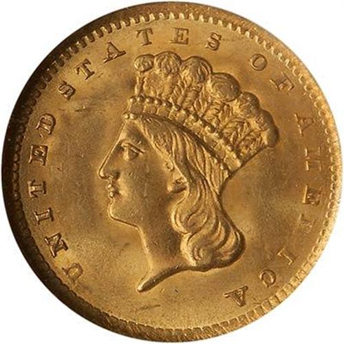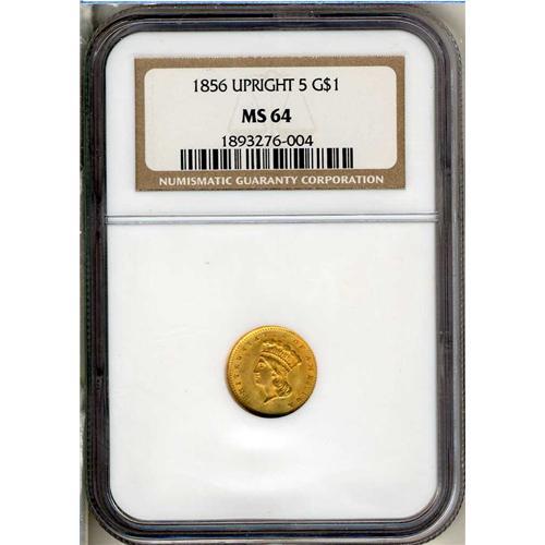 Lot 481 - 1856 $1 Gold Indian. Upright 5 NGC MS64