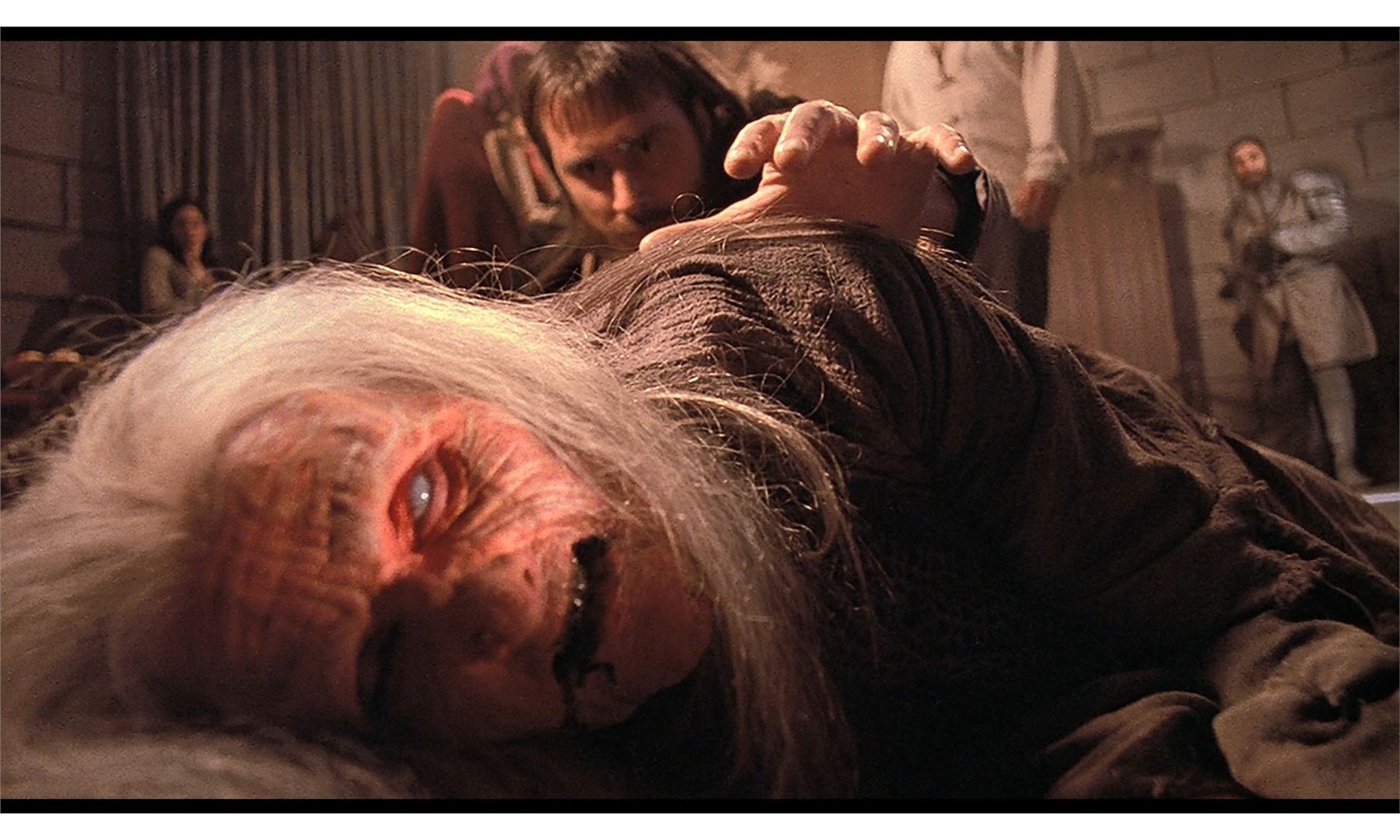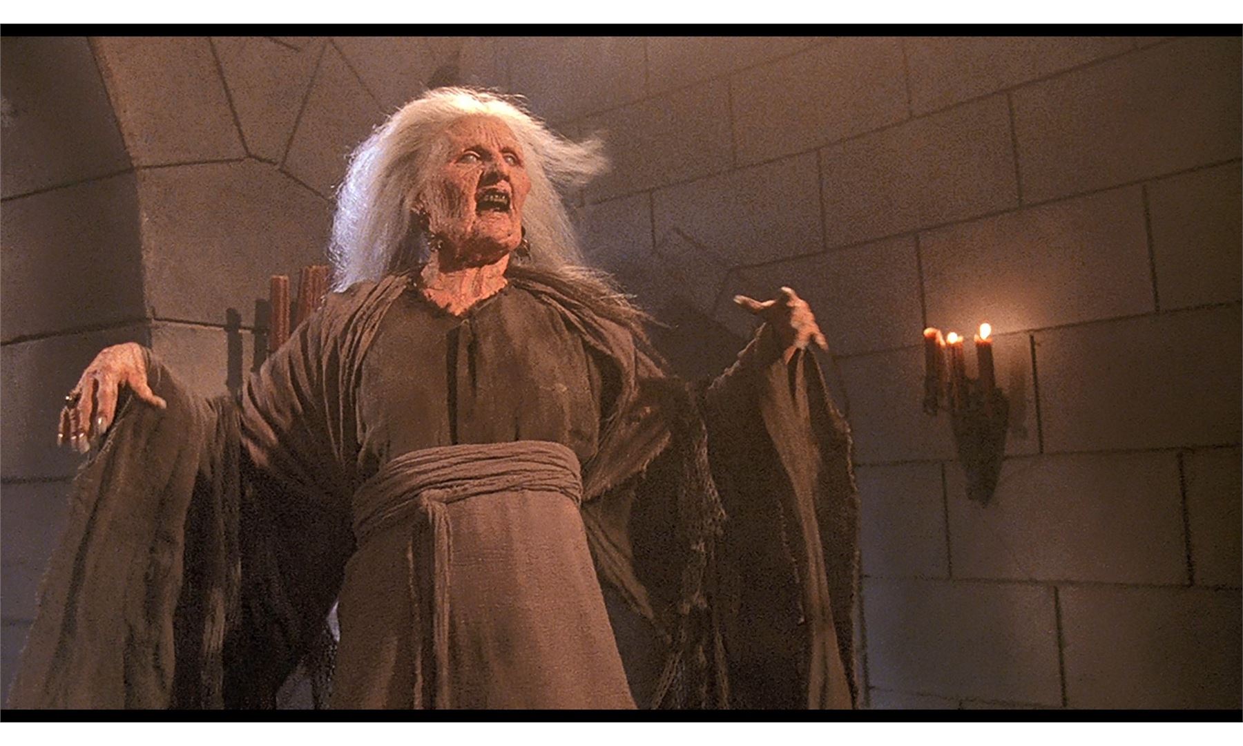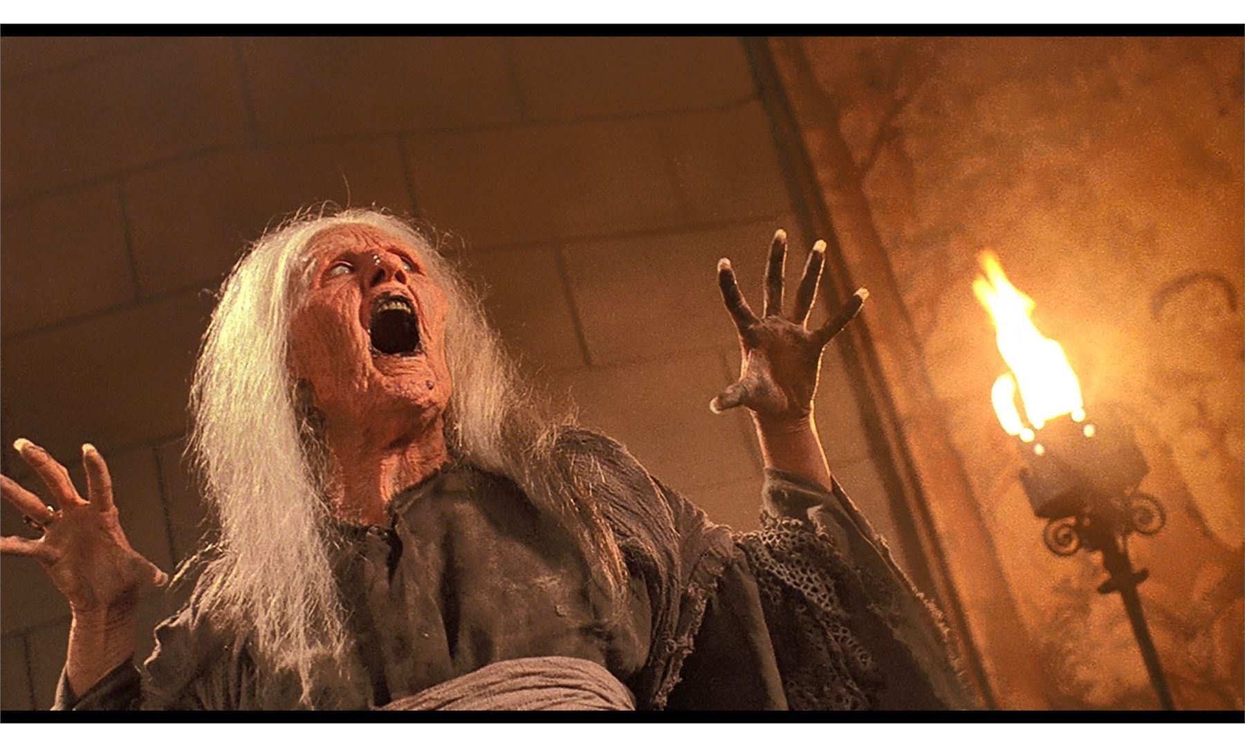 This lot will be auctioned on Wednesday, June 30th. The auction will begin at 9:00am PDT and lots are sold sequentially via live auctioneer; tune in to the live streaming broadcast on auction day to follow the pace. Note other lots in the auction may close on June 29th or July 1st. A life-size Possessed Witch figure from Sam Raimi's horror action comedy Army of Darkness. Ash Williams (Bruce Campbell) took a Possessed Witch (Patricia Tallman) down with his Boomstick. This foam witch figure is hand-painted red with hand-punched black and gray hair, a gold-color metal ring and matching earrings, and a tan and olive green burlap caped robe. It features a posable wire frame interior and a metal pole bottom mounted to a wooden display stand. The figure is intentionally distressed by production to appear ragged and aged, but remains in good overall condition. Dimensions: 67.5" x 23" x 20" (171.5 cm x 58.5 cmx 51 cm) Stored off-site; see notice in the Buyer's Guide. Estimate: $1,200 - 1,800