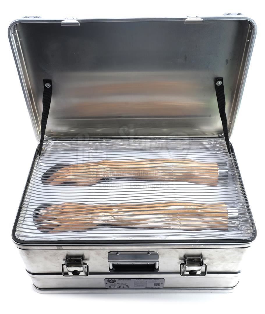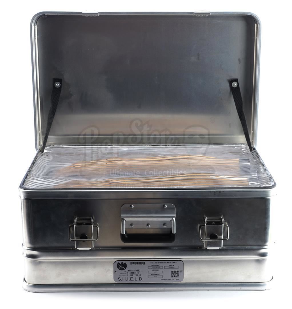 Elena 'Yo-Yo' Rodriguez's new 'Human' arms from the episode 'The New Deal' (701) of Marvel's Agents of S.H.I.E.L.D. In the episode, Rodriguez, known in the pages of Marvel Comics as Slingshot, is given a new pair of artificial arms by Jemma Simmons which look more organic, allowing her to walk around in the 1930s. This lot consists of a metal case with a S.H.I.E.L.D.-branded label on the front. Inside the case is a white-foam inlay featuring a pair of flesh-tone urethane arms with metal accents set under a layer of clear urethane wrapping with gray stripes. It is in excellent overall condition with some wear from production including scuffing on the exterior of the case and urethane wrapping.