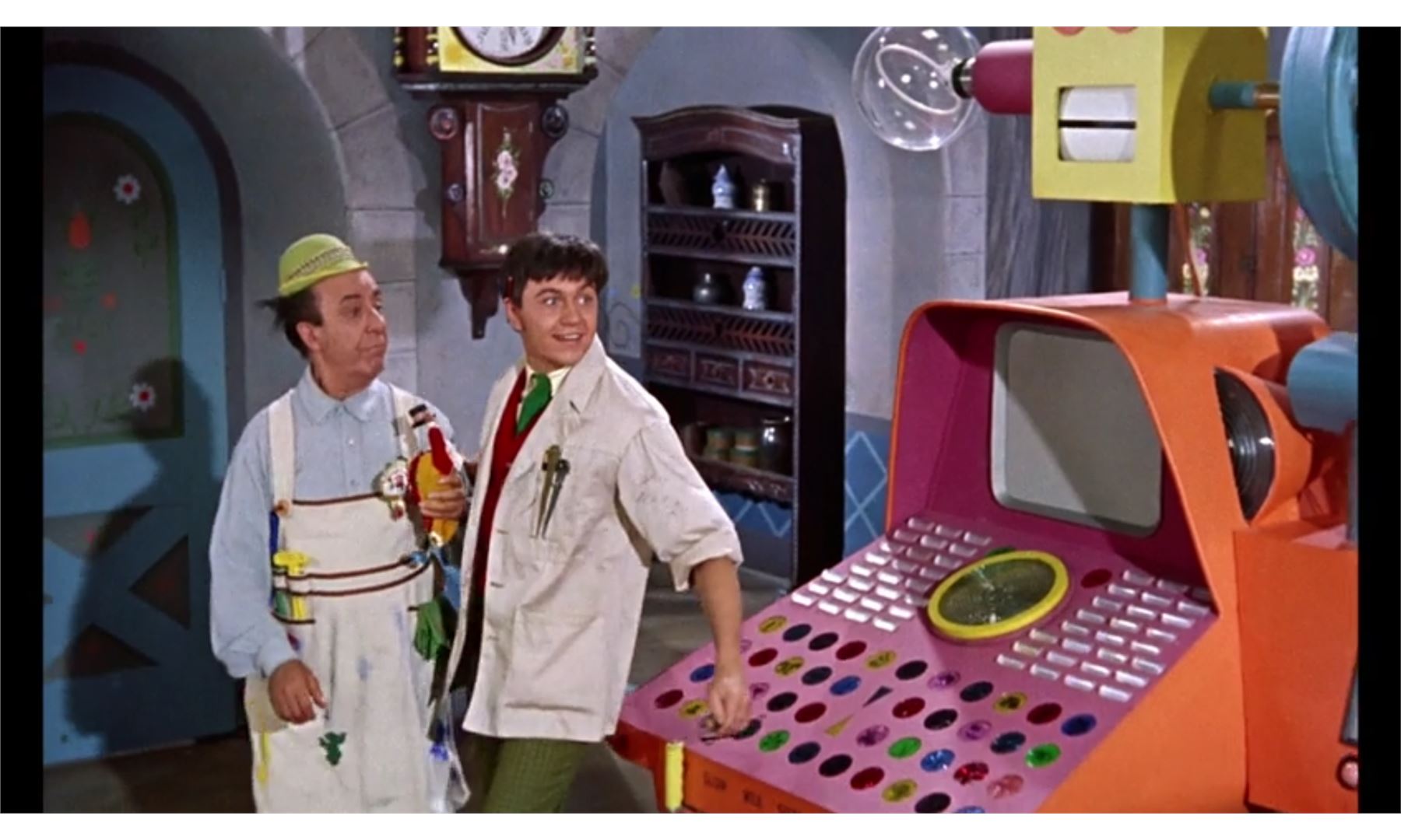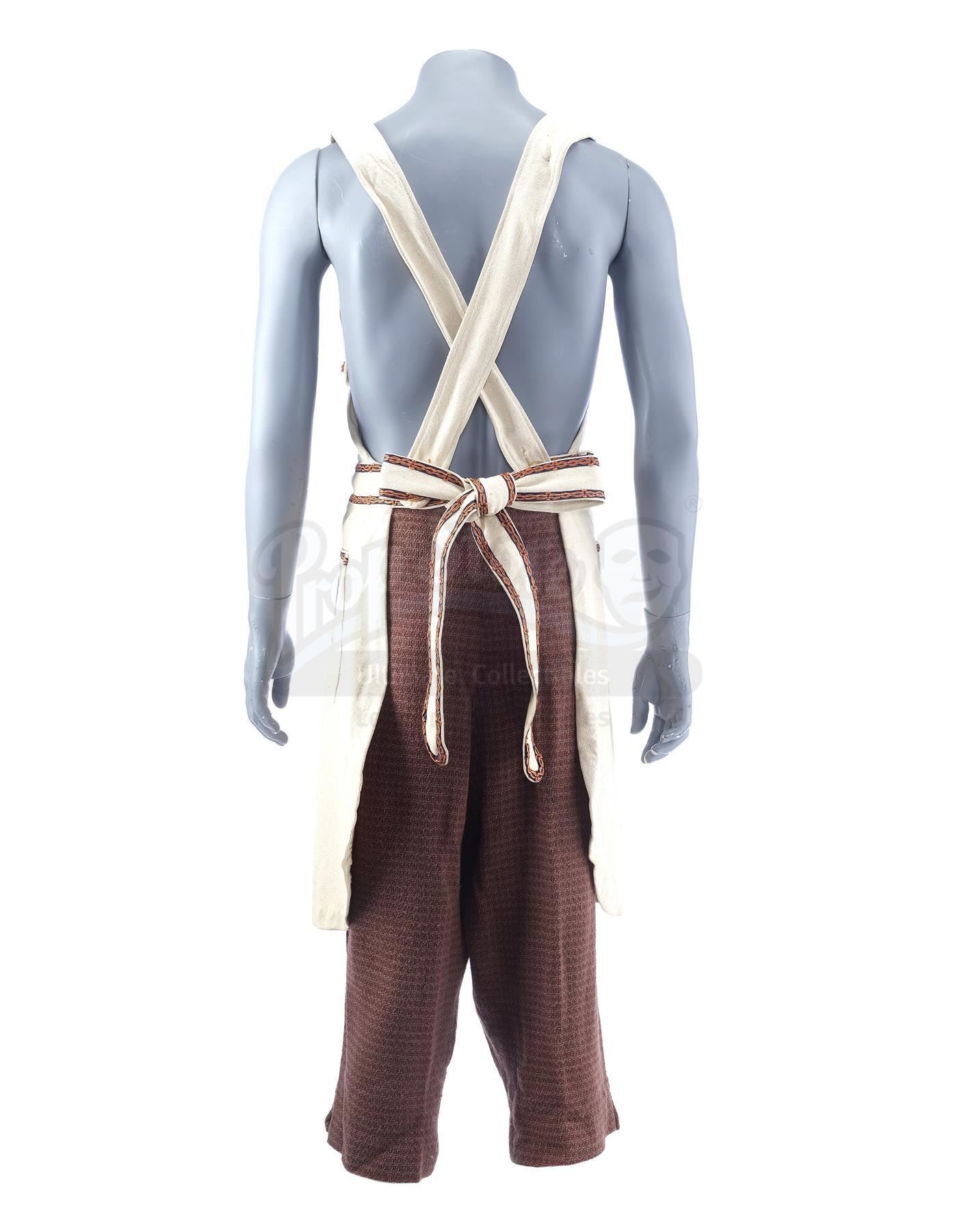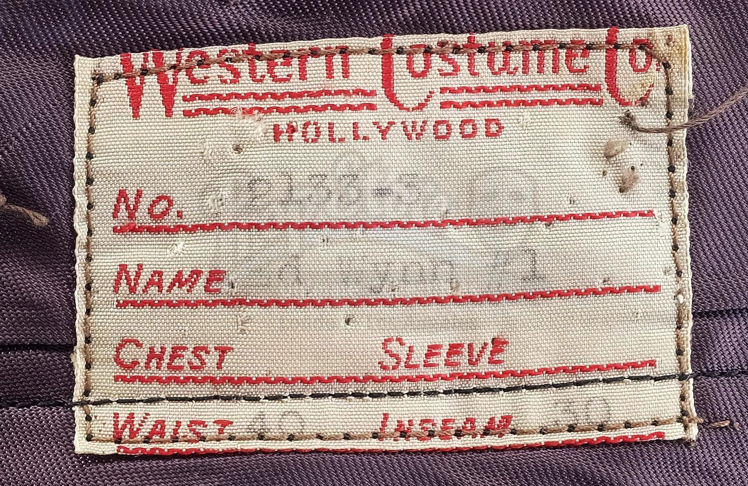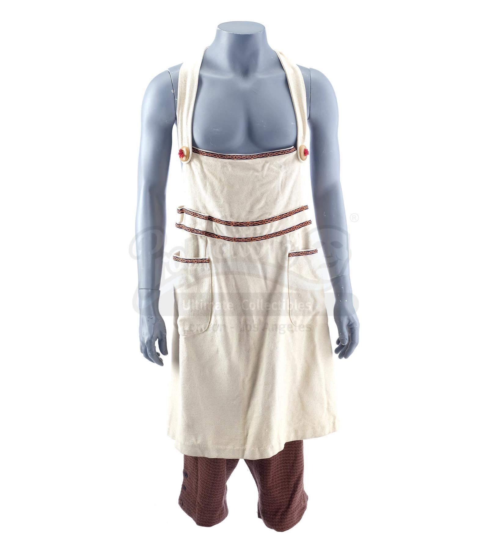 This lot will be auctioned on Wednesday, June 30th. The auction will begin at 9:00am PDT and lots are sold sequentially via live auctioneer; tune in to the live streaming broadcast on auction day to follow the pace. Note other lots in the auction may close on June 29th or July 1st. Toymaker's (Ed Wynn) apron and pants from Jack Donohue's holiday musical Babes in Toyland. The mayor of Toyland, the Toymaker built toys in anticipation of his Christmas deadline with help from his inventive assistant, Grumio (Tommy Kirk). This lot consists of a cream-color canvas apron with oversized wooden buttons, two front pockets, and black and orange thread accents, and a pair of brown and beige patterned wool pants with metal clasps. Both items are marked on the interior with Western Costume tags reading "Ed Wynn #1." It exhibits signs of wear from age and use, but remains in good overall condition. Estimate: $600 - 800