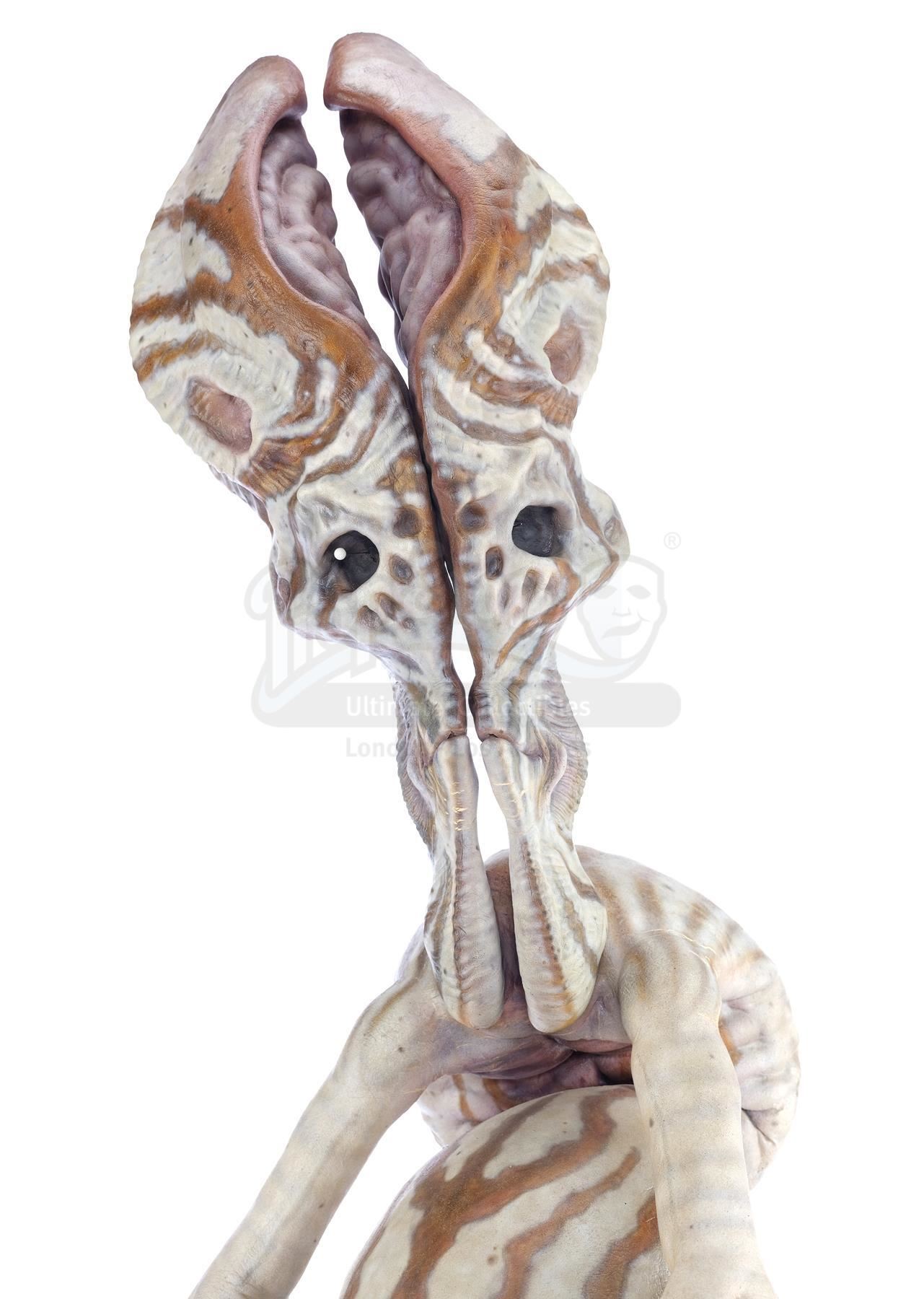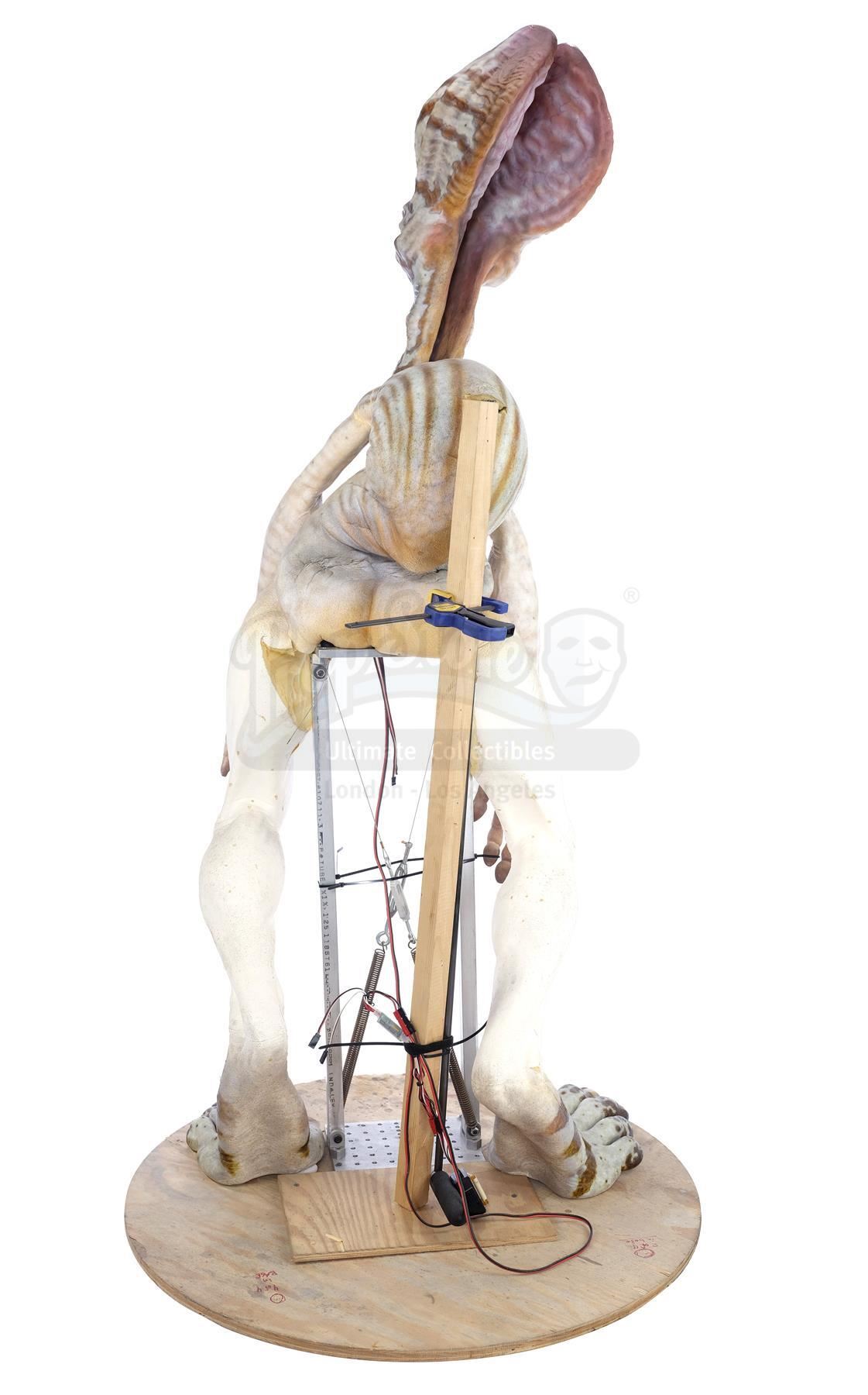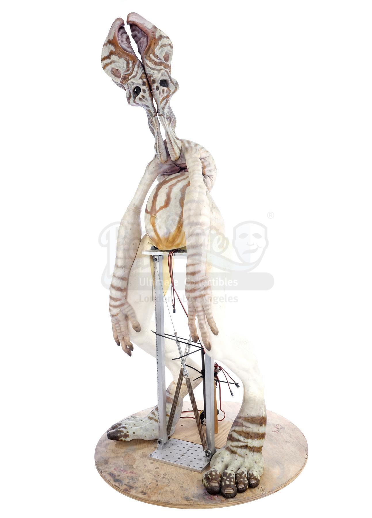 A full-size standing dignitary alien puppet from the production of Barry Sonnenfeld's sci-fi comedy sequel Men in Black 3. Agent J (Will Smith) traveled back in time to 1969, where various alien emissaries visited MIB headquarters. This was one of many characters designed and produced by Academy Award-winning alien make-up effects artist Rick Baker.