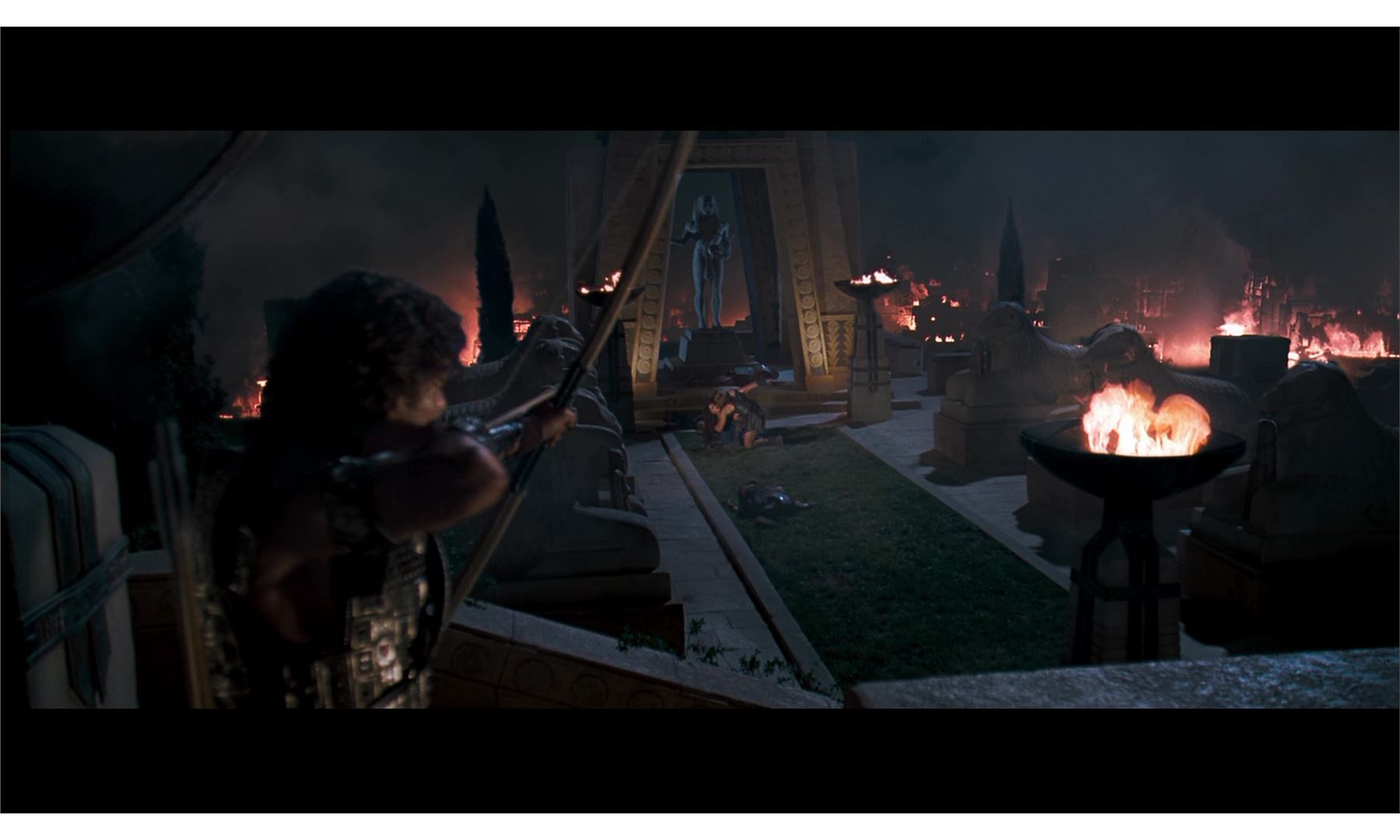 TROY (2004) - Paris' (Orlando Bloom) Bow, Quiver, and Arrows - Paris' (Orlando Bloom) bow, quiver, and arrows from Wolfgang Petersen's mythical epic Troy. Paris used his bow and arrows to shoot and kill the legendary Greek warrior Achilles (Brad Pitt).