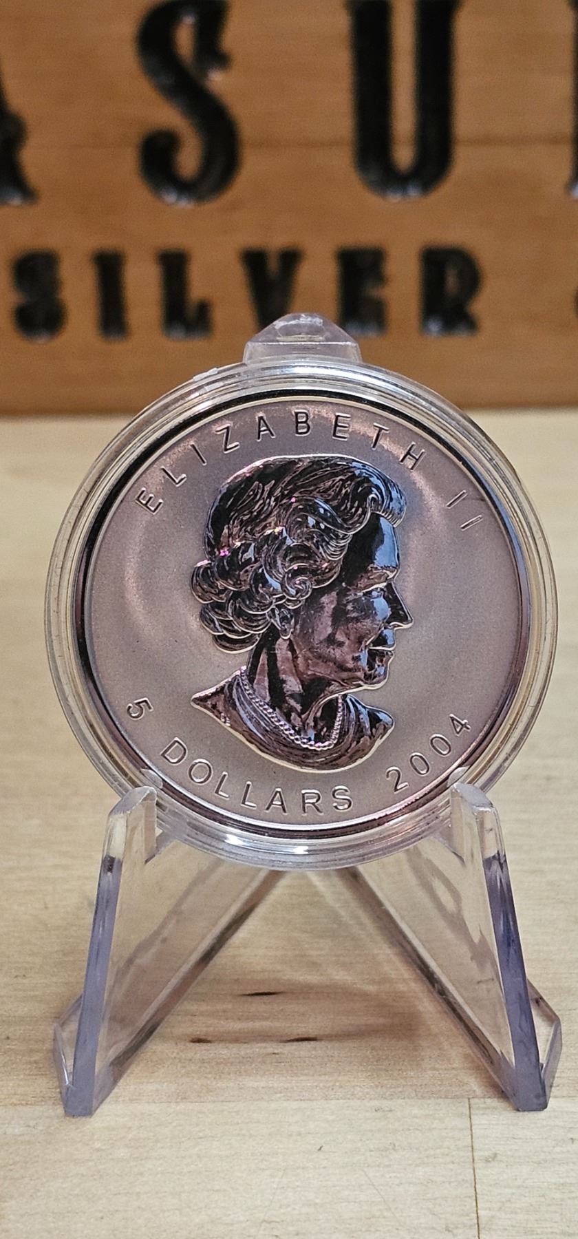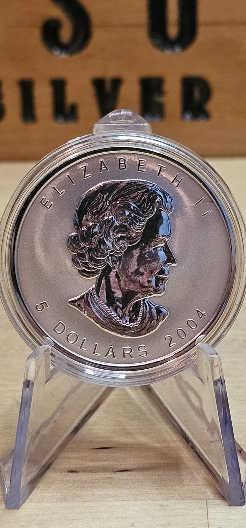 The 2004 1 oz Canadian Maple Leaf silver coin features the iconic maple leaf design, symbolizing Canada’s national pride. Struck from 99.99% pure silver, this coin showcases exceptional detail and quality, making it a favorite among collectors and investors. With its limited mintage, the 2004 edition is particularly sought after, adding historical significance to its intrinsic value. The Canadian Maple Leaf coin is a timeless piece that represents both beauty and reliability in the world of precious metals.