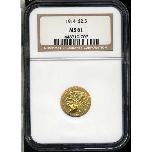 Lot 492 - 1914 $2.50 Indian NGC MS61