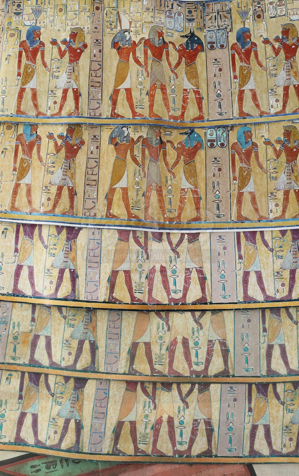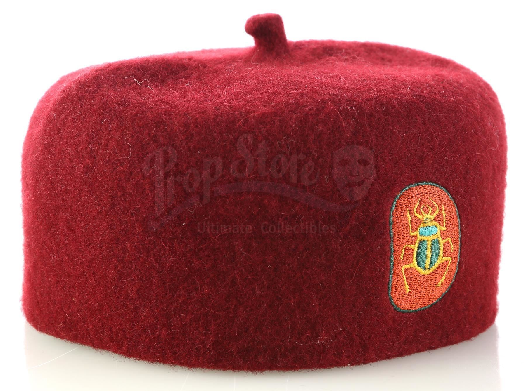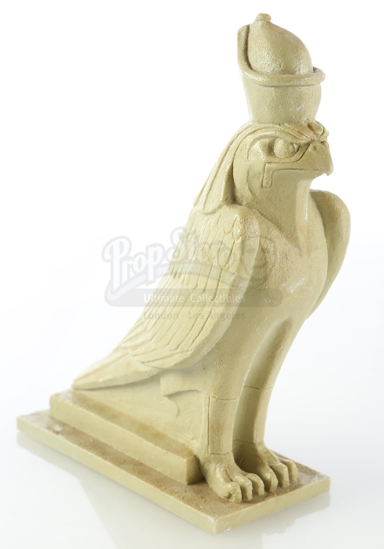 The lot includes six miniature set pieces, including five miniature statues and one miniature sphinx head, production pieces, photos, and a crew hat. Likely made as part of the production of the miniature Thebes and Hamunaptra sets, the pieces remain unpainted and vary in materials as some are made of resin, fiberglass and clay. Also included in the lot are a miniature fire bowl made of wood and resin, 18 mock-up hieroglyphic pieces made of clean resin, and 30 concept Egyptian pictures, 4 of which are printed on paper while the rest are on strips of fabric. A set of 21 behind-the-scenes photos of the miniature sets and a red Industrial LIght & Magic (ILM) VFX crew cap embroidered with the film's title and a beetle hieroglyphic complete the lot. Dimensions: (largest) 16" x 22 1/2" x 1/4" (41 cm x 57 cm x 1 cm); (smallest) 1" x 1/2" (2 1/2 cm x 1 cm)