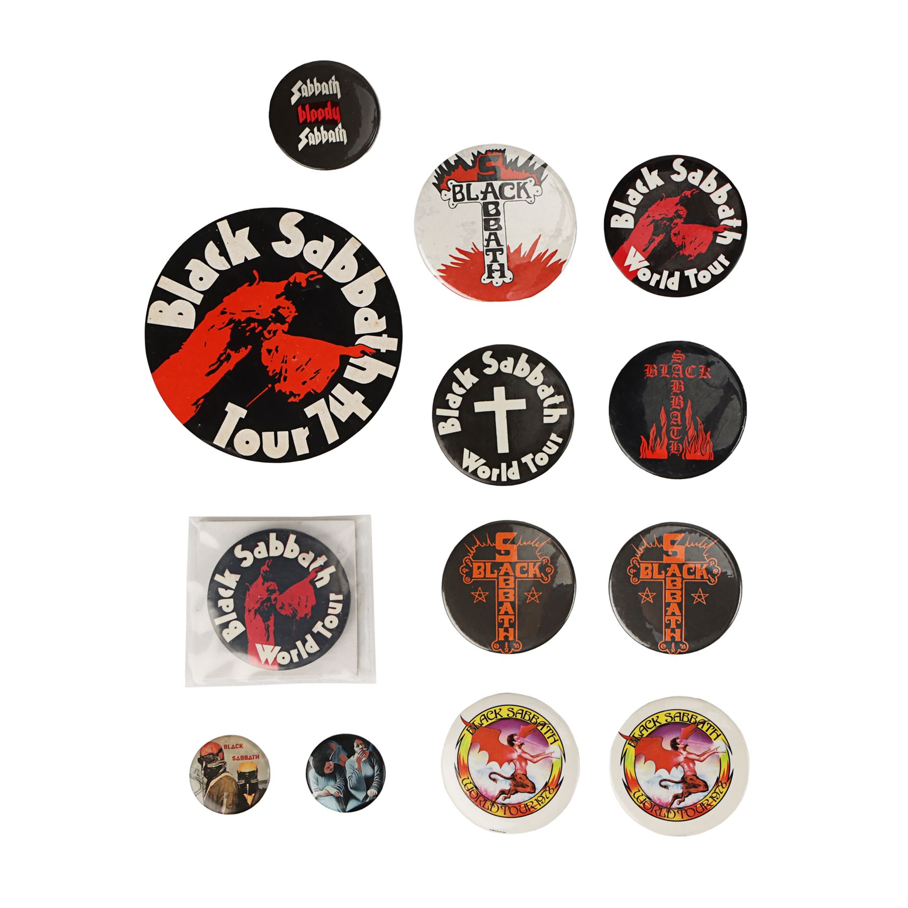 A collection of badges and promotional items relating to the English rock band Black Sabbath. This lot originally came from the personal collection of David Tangye.