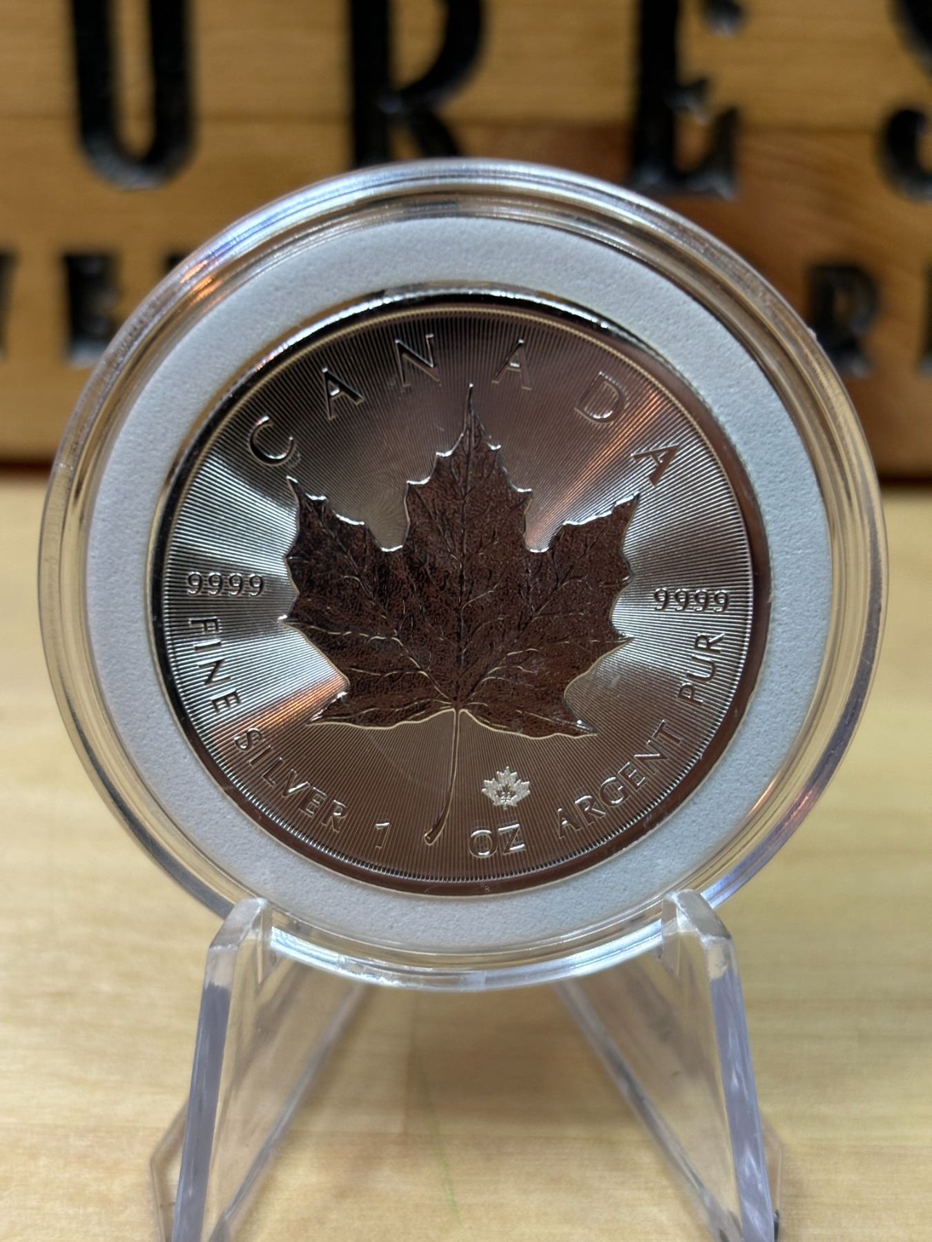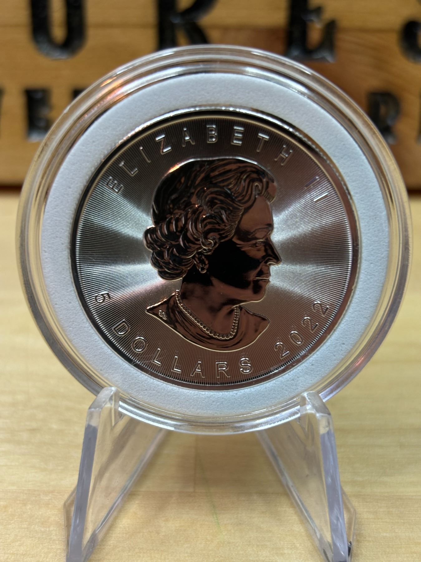 The 2022 1 oz Canadian Silver Maple Leaf is a .9999 fine silver coin featuring King Charles III on the obverse and the iconic maple leaf on the reverse. With advanced security features and MINTSHIELD™ protection, it’s perfect for collectors and investors.