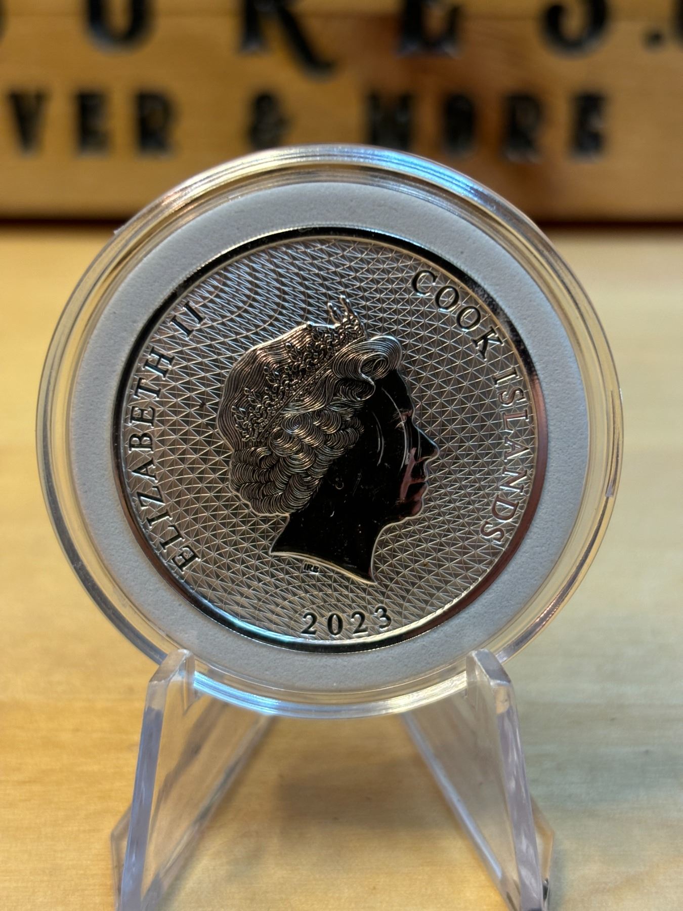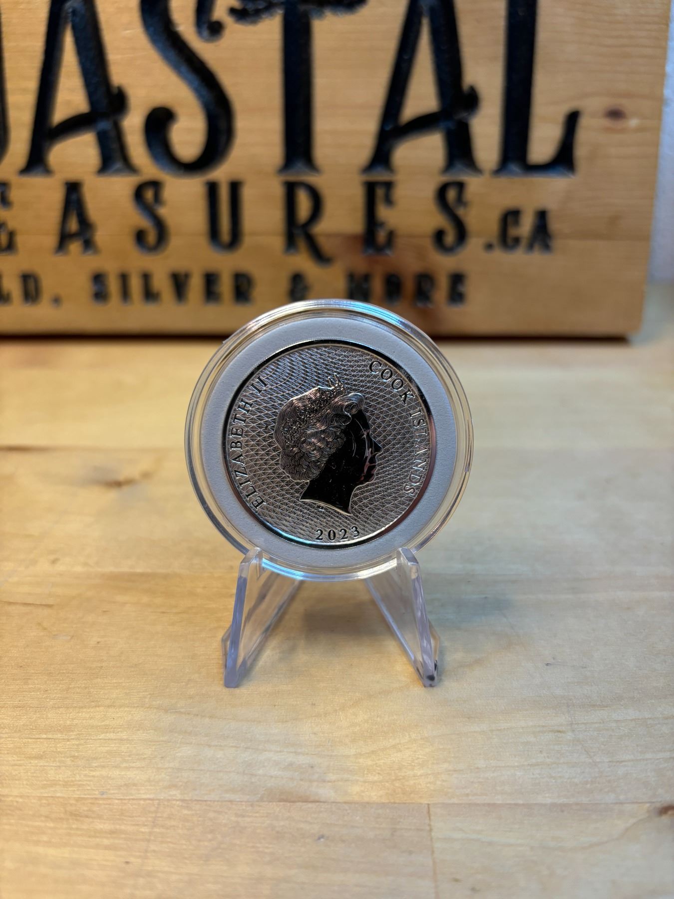 The 1 oz Cook Islands Silver Coin is a .999 fine silver coin weighing 1 ounce (31.1 grams). It is legal tender in the Cook Islands, though its value is mainly based on its silver content and collectible designs. These coins feature various themes, such as wildlife, historical events, and cultural symbols, making them popular with both investors and collectors. With a face value typically of $1 Cook Islands, the coin is recognized worldwide for its quality and craftsmanship.