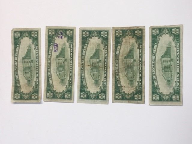 Lot (5) 1929 $10 San Francisco CA National Currency Notes - Charter 1741