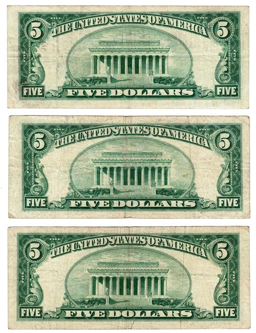 One Lot (5) 1953 $5 Silver Certificate Notes