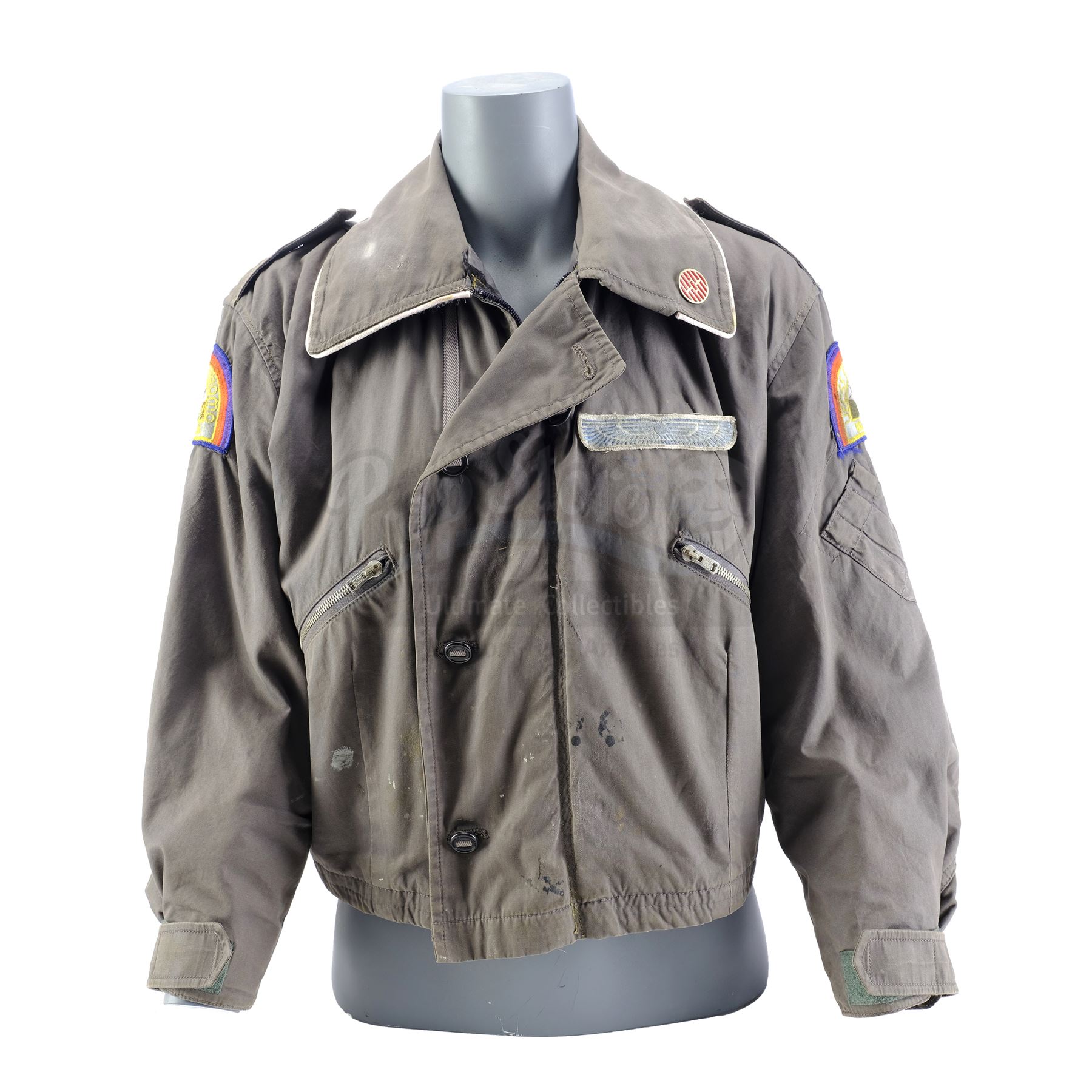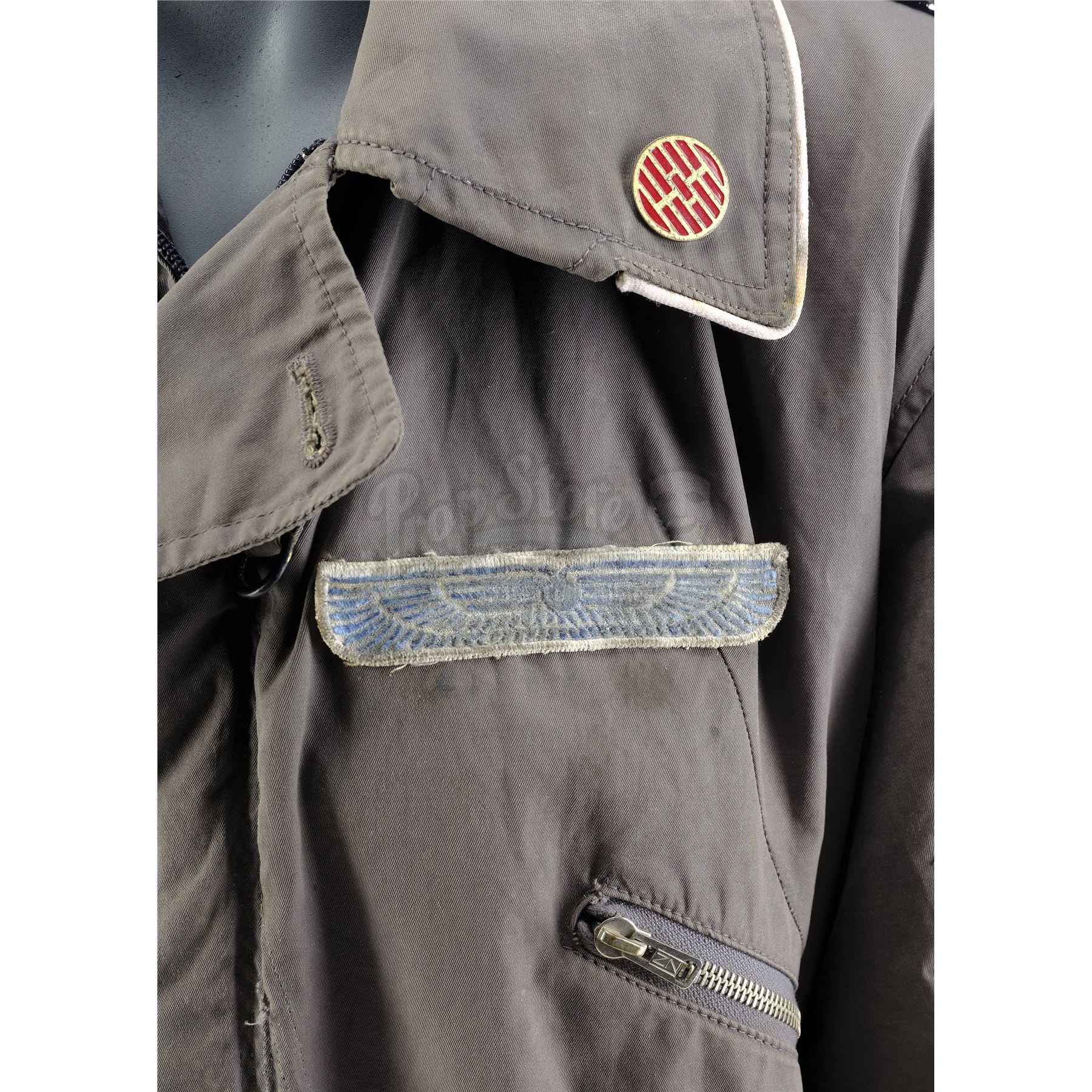This lot will be auctioned on Tuesday, June 29th. The auction will begin at 9:00am PDT and lots are sold sequentially via live auctioneer; tune in to the live streaming broadcast on auction day to follow the pace. Note other lots in the auction may close on June 30th or July 1st. A women's USCSS Nostromo crew jacket prototype from Ridley Scott's sci-fi horror film Alien. Crew members on the starfreighter Nostromo wore their standard-issue jackets throughout the film, and Dallas (Tom Skerrit) and Kane (John Hurt) both had similar gray jackets to this prototype. This gray production-made wardrobe prototype jacket features a black button closure and zip-up front with fastening strips on the cuffs, a pair of zippered front pockets, multi-color embroidered patches on each sleeves reading "USCSS Nostromo 180286", the Weyland-Yutani wings patch, and a red and gold-color pin on the collar. The lot is in good overall condition with some wear from age, including staining throughout the jacket and thread pulling to the patches. Estimate: $3,000 - 5,000