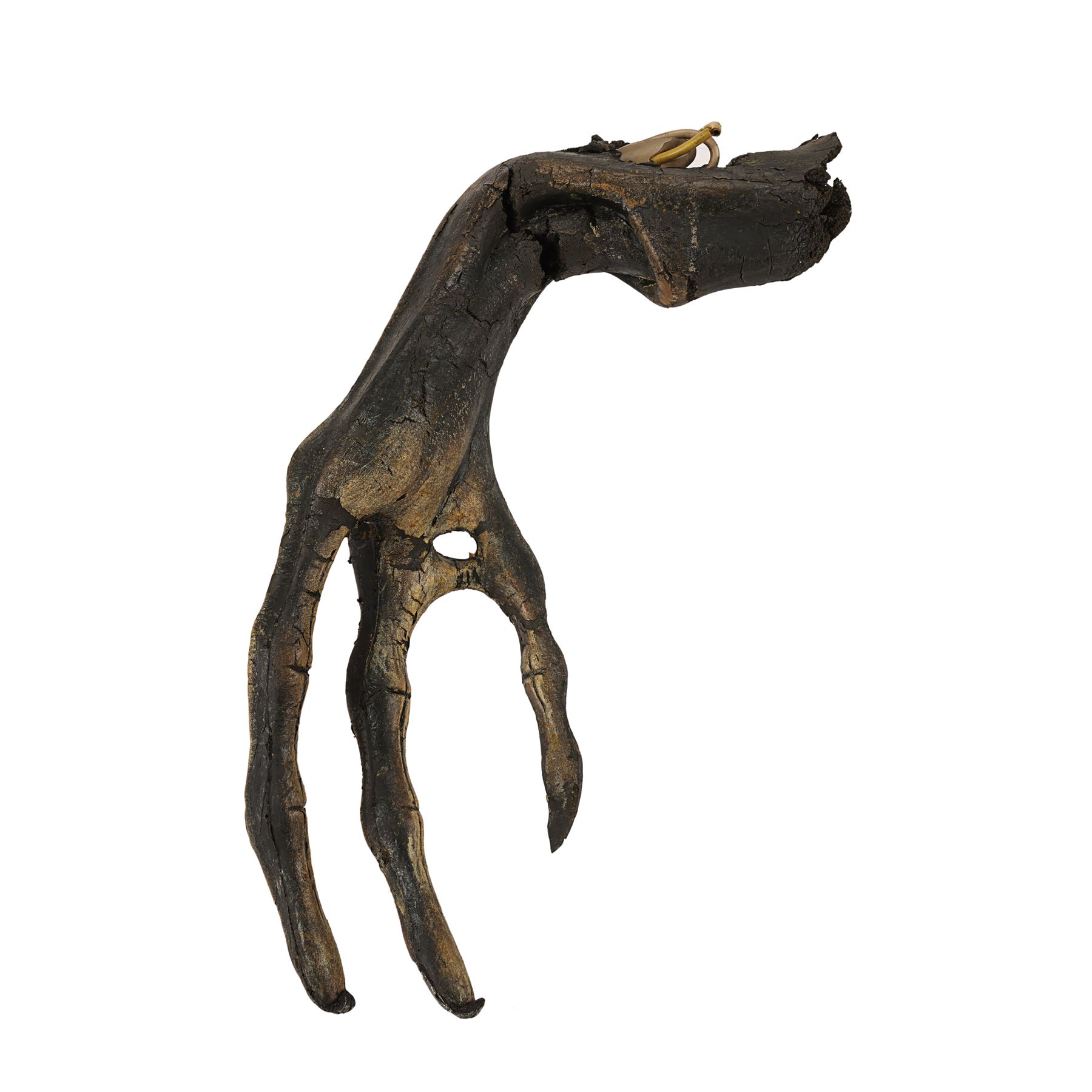 A xenomorph warrior hand from James Cameron's sci-fi action sequel Aliens. Xenomorph warriors attacked the Colonial Marines throughout the film, and this hand was made for the deleted scenes in which the xenomorphs tested the sentry guns by throwing their bodies in the line of fire. These scenes were restored for the Aliens Special Edition, first released in 1991.