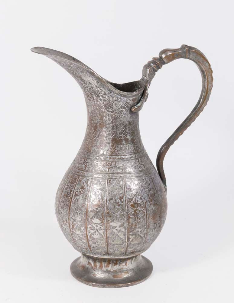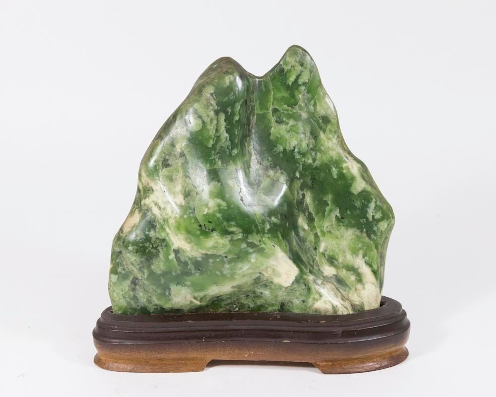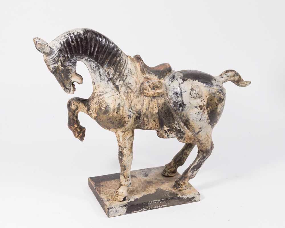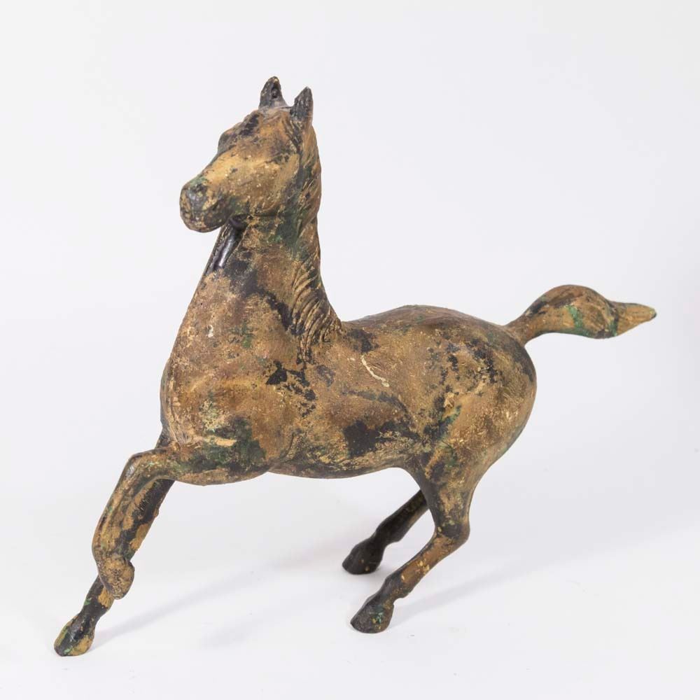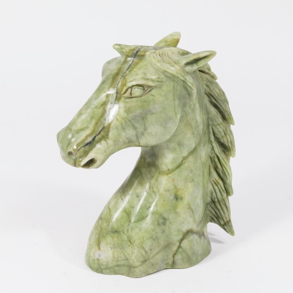 Including copper jug, approx. 11 1/2" H; 2 cast iron horses; jade horse head; and jade sculpture on wooden base, approx. 8" H with base.